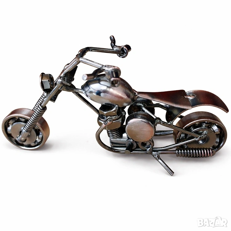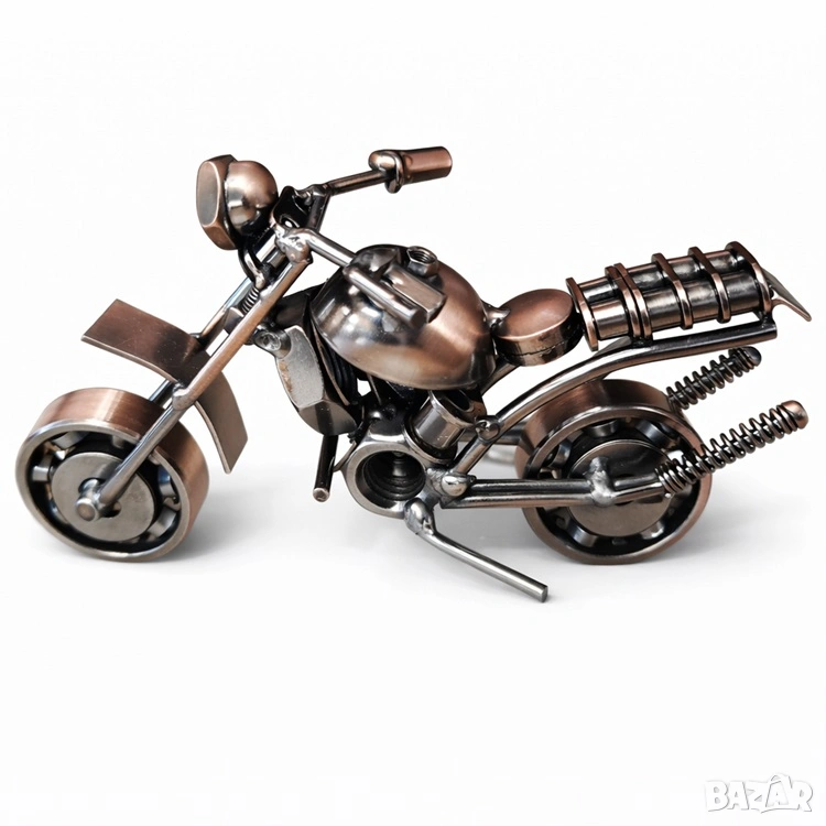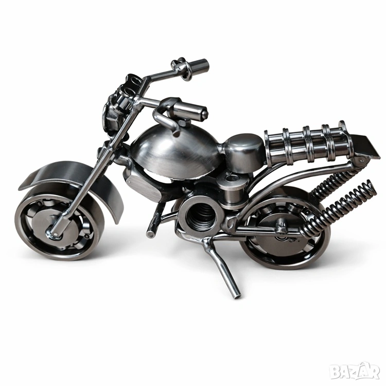Стилна метална фигурка мотор с реалистичен дизайн – перфектно допълнение към бюро, офис или домашен интериор. Изработена с внимание към детайла, тази фигурка е отличен избор за подарък на човек, който обича моторите и свободата.