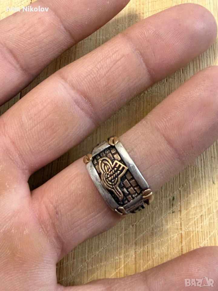 Османски мъжки сребърен пръстен с тугра → Обява 54182828