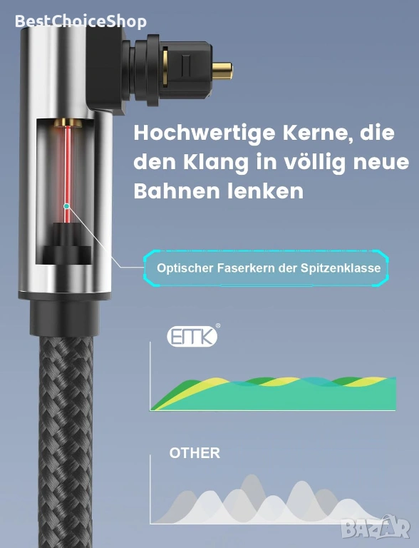 - [Висококачествена оптична сърцевина] С първокласна оптична сърцевина от японската Toray Industries, този кабел осигурява цифрово аудио предаване без изкривявания и е перфектният избор за некомпресирано PCM аудио и компресирани 5.1 до 7.1 съраунд звукови системи (Dolby Digital Plus и DTS-HD).
