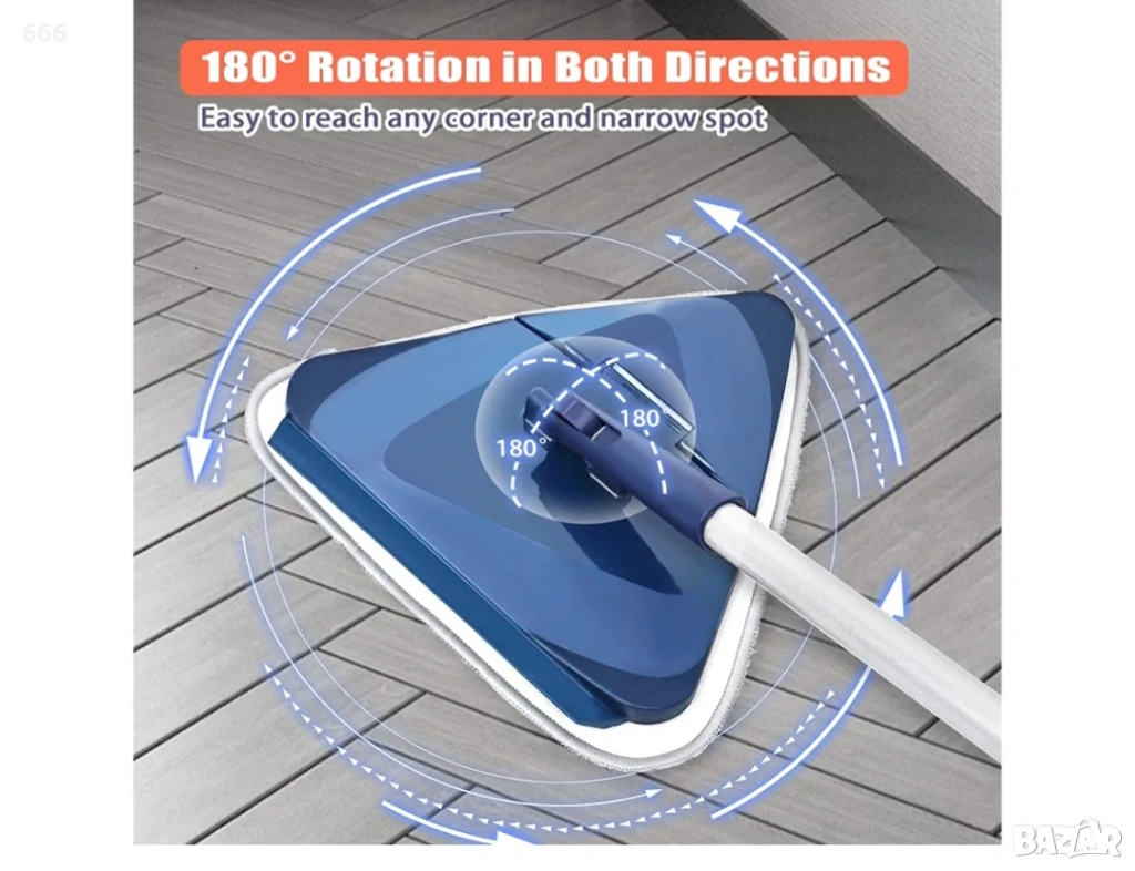 Вградена чистачка: Този регулируем, въртящ се на 360 градуса почистващ моп е оборудван със силиконова чистачка за изстъргване на вода от подове, прозорци, стъкло и огледала.