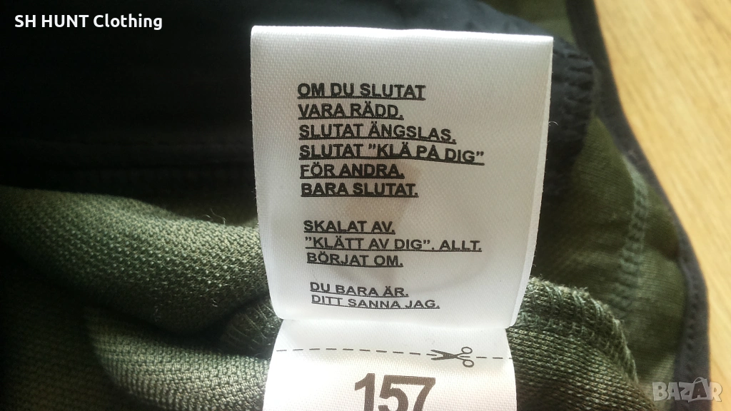 Размер: М - ширина под мишниците 61 см , разтяга се до 66 см , дължина 87 см заедно с яката , 80 см без яката.