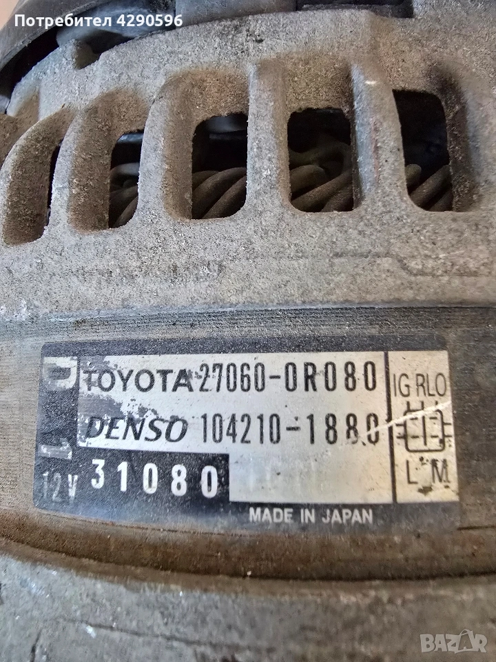 Алтернатор за Toyota дизел - 27060 0R080 / Rav Avensis Auris, снимка 1 - Части - 54183288 Алтернатор за Toyota дизел - 27060 0R080 / Rav Avensis Auris, снимка 2 - Части - 54183288 Алтернатор за Toyota дизел - 27060 0R080 / Rav Avensis Auris, снимка 3 - Части - 54183288 1/3