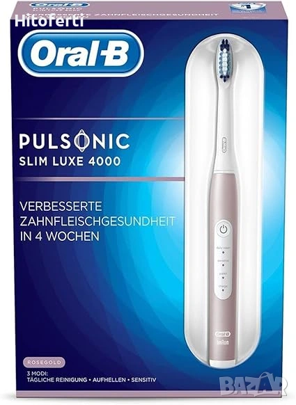 С Pulsonic Slim Luxe можете да миете зъбите си като зъболекар. Благодарение на ултратънкия и лек накрайник, четката за зъби стои особено добре в ръката. Удължената глава на четката вибрира с нежна звукова технология и повече от 31 000 вибрации в минута, за да премахне нежно повърхностните обезцветявания.