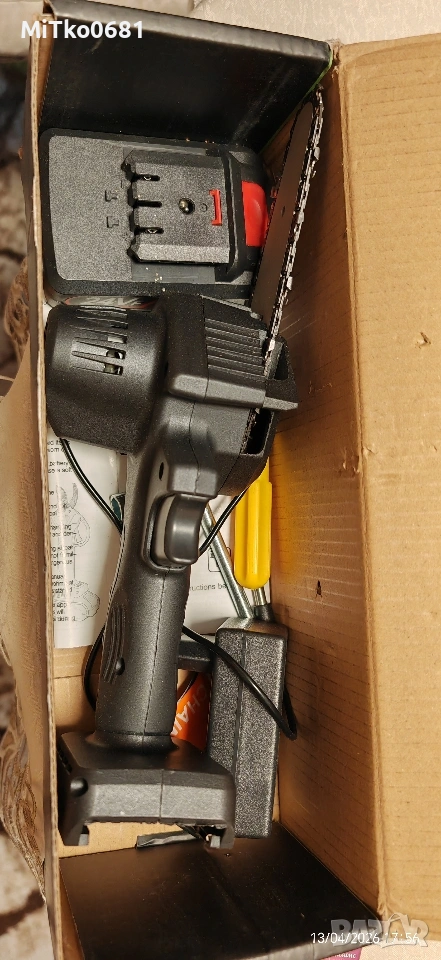 Акумулаторен мини верижен трион. , снимка 1 - Градинска техника - 54183497 Акумулаторен мини верижен трион. , снимка 2 - Градинска техника - 54183497 1/2