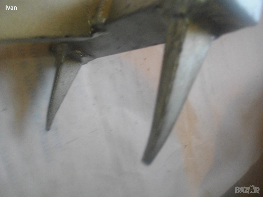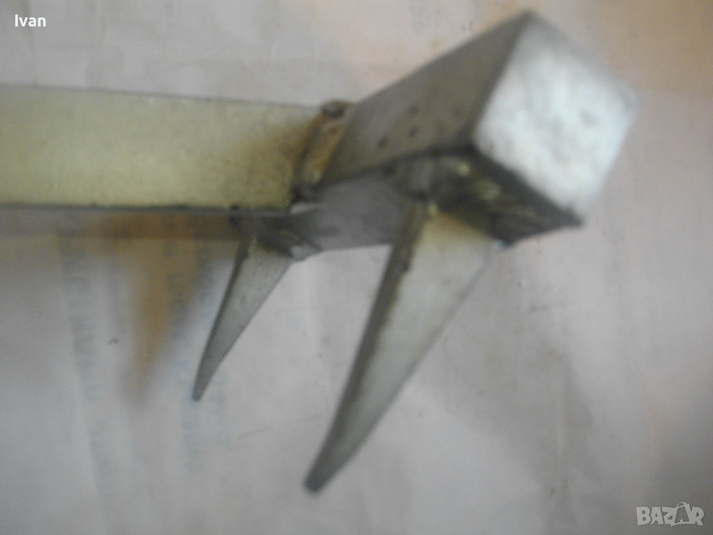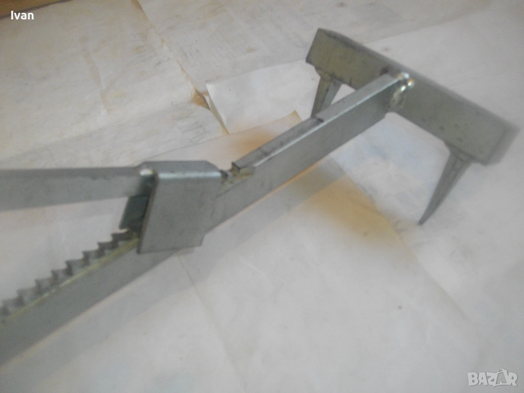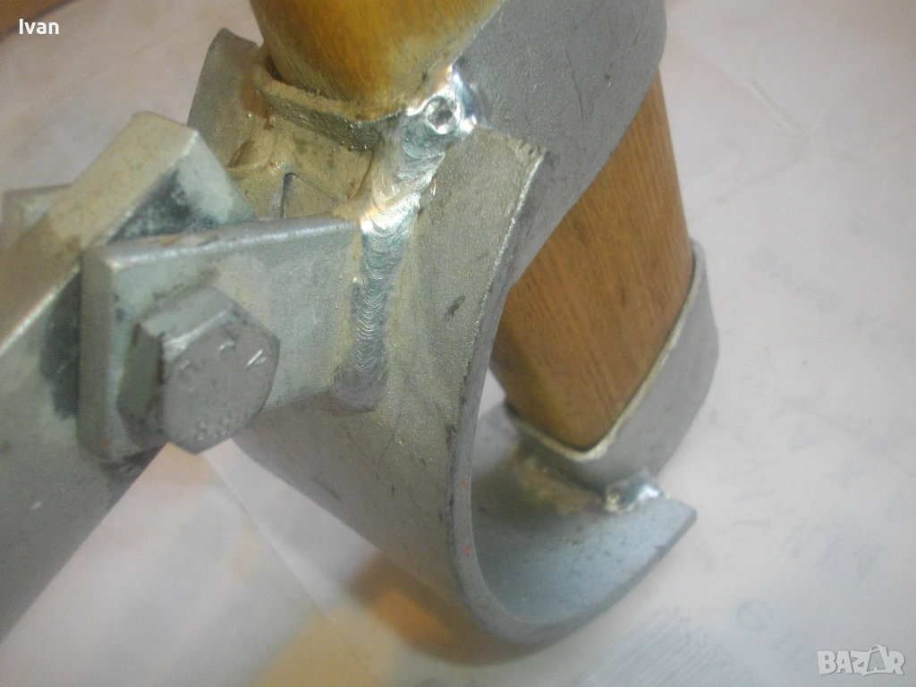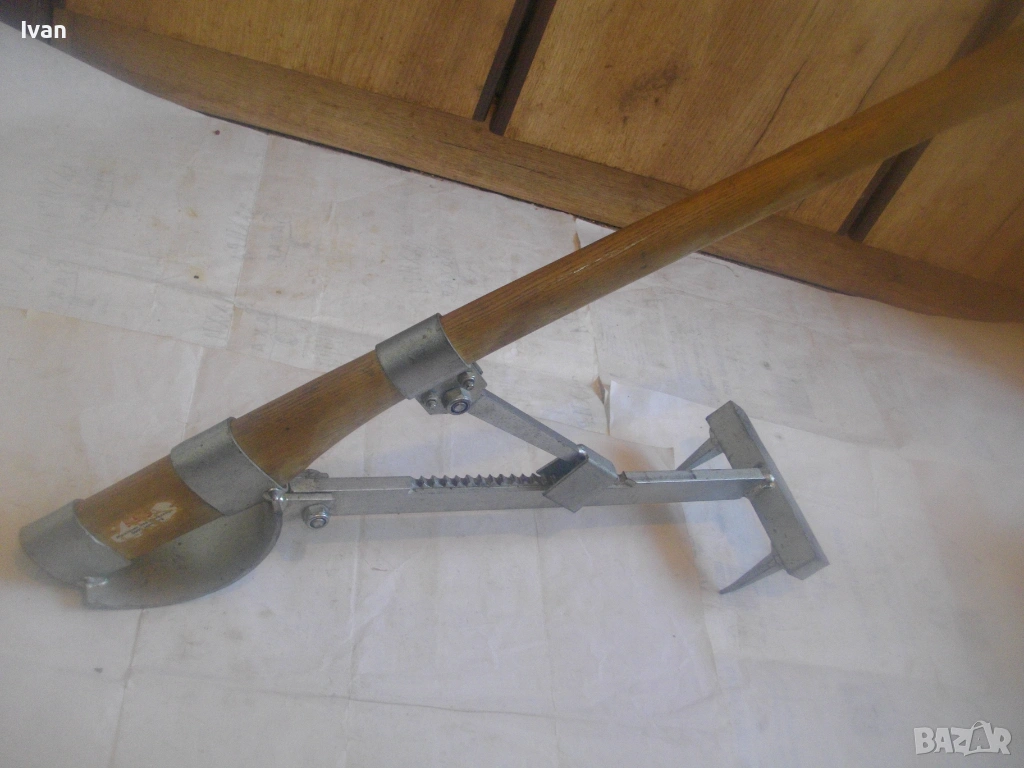Дървен сап лост масивен с дължина 67 см, подвигащ и обръщащ трупата метален механизъм със зъбни стопери застопоряване под желан определен ъгъл. Металната част на устройството под дървения лост е с дължина 58 см, следва широка част метална 18 см, на която са разположени 2 броя метални масивни зъби с дължина по 6 см, с които се захващат трупите.