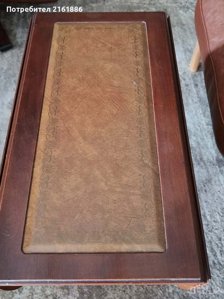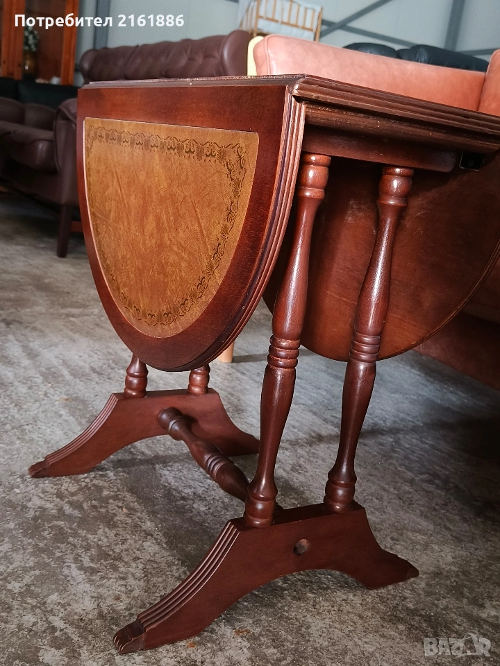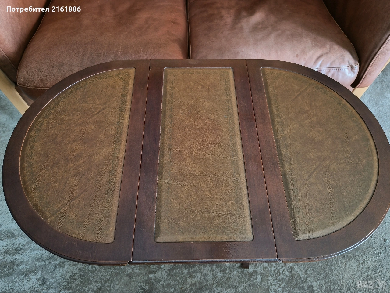 Помощна разтегателна маса с кожен плот с интарзия → Обява 54183630