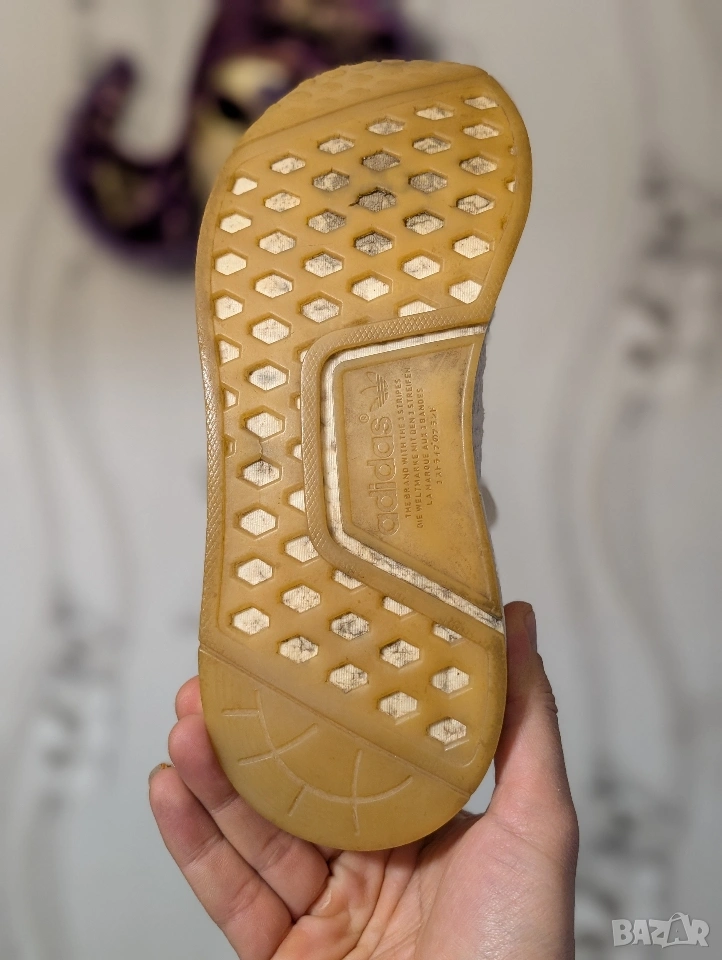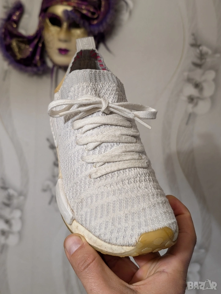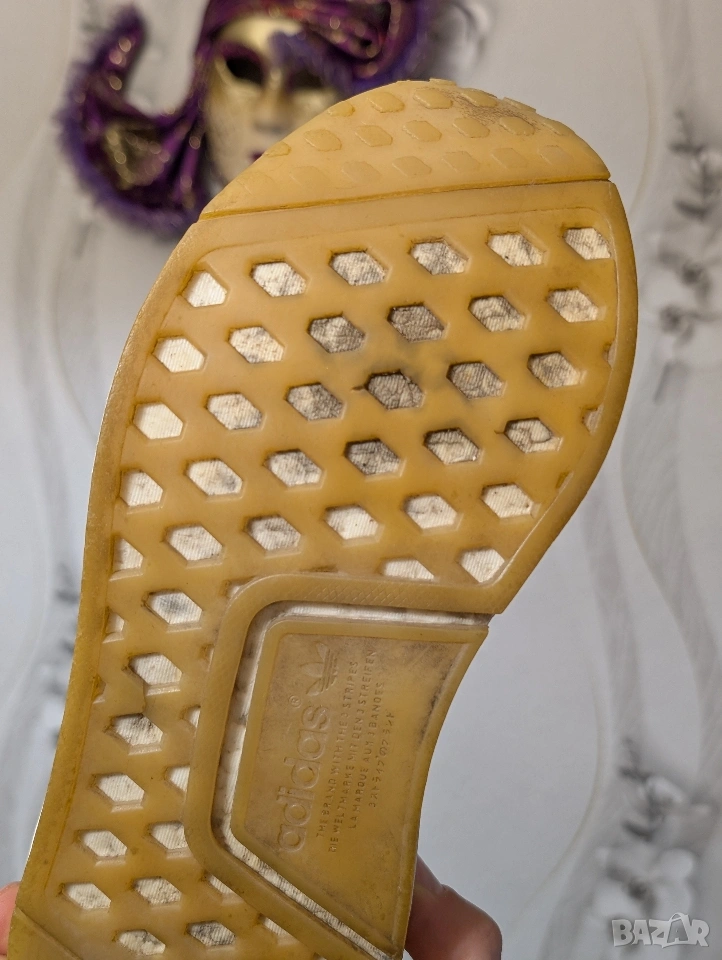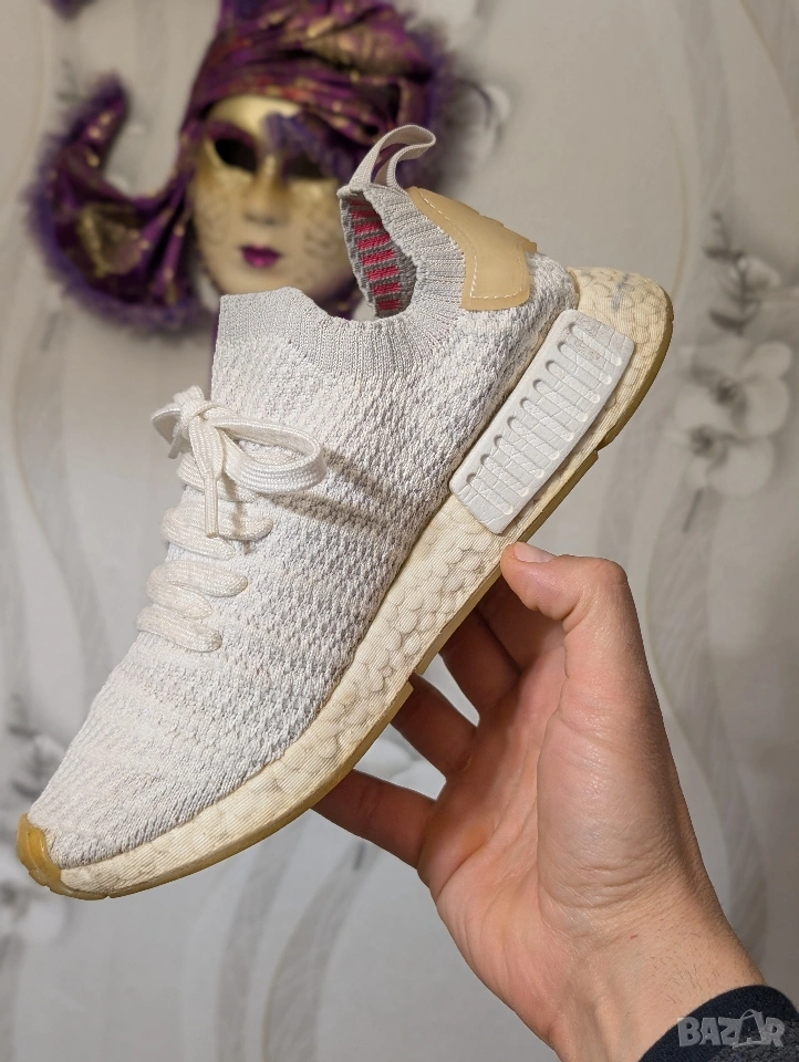Дизайн: Отличава се с характерните за серията NMD „тапи“ (EVA plugs) в междинната подметка и липсата на традиционни три ленти отстрани