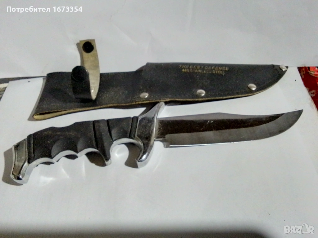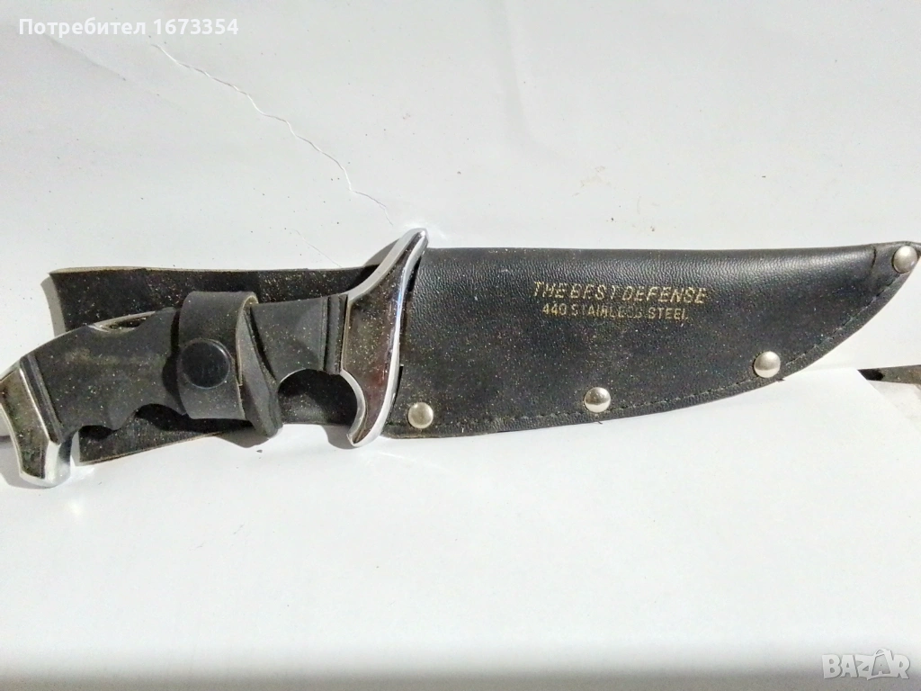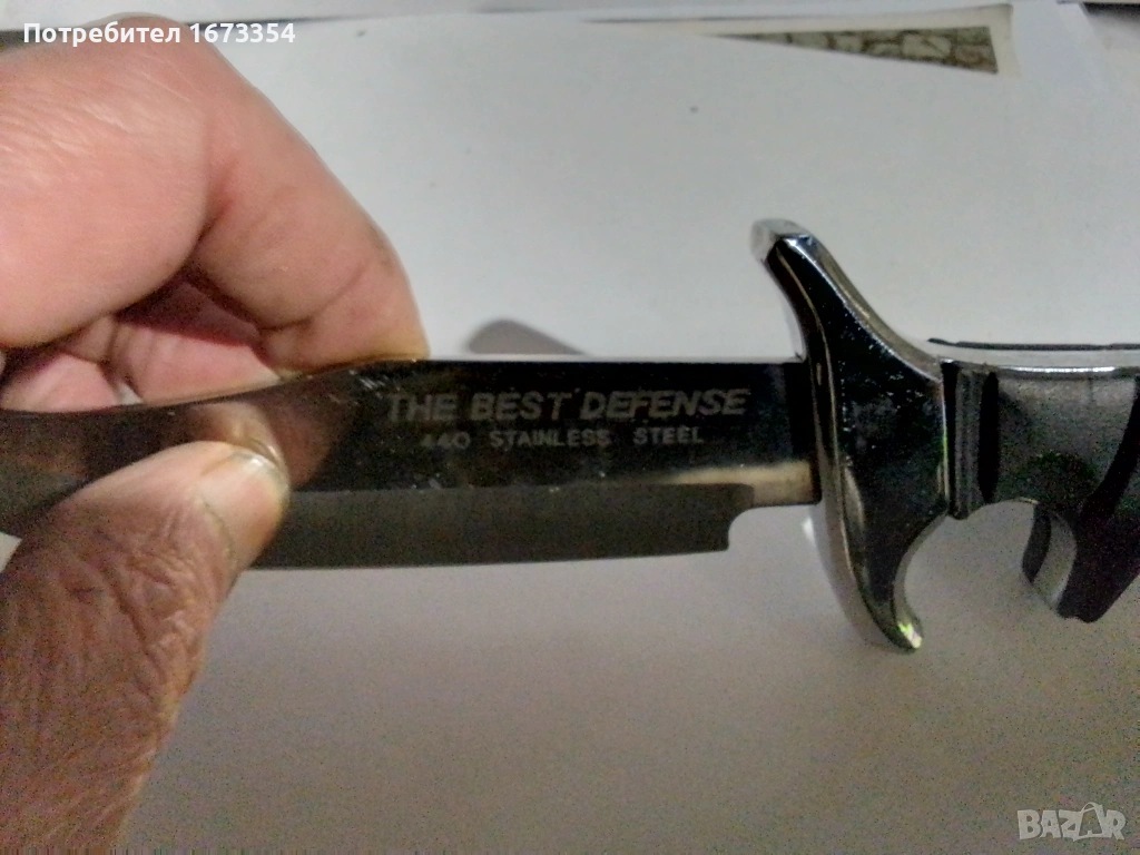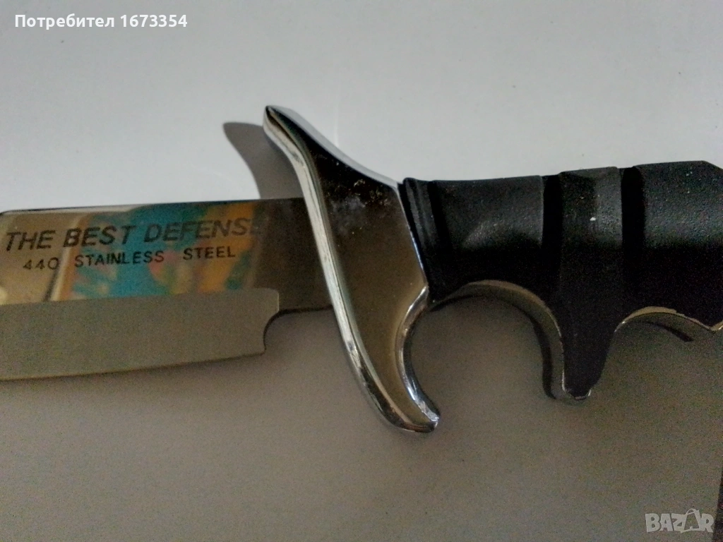 ножTHE BEST DEFENSE STAINLESS STEEL нов в перфектно състояние с малък дефект в канията на снимка номер девет(9),цена за него 35.00 евро