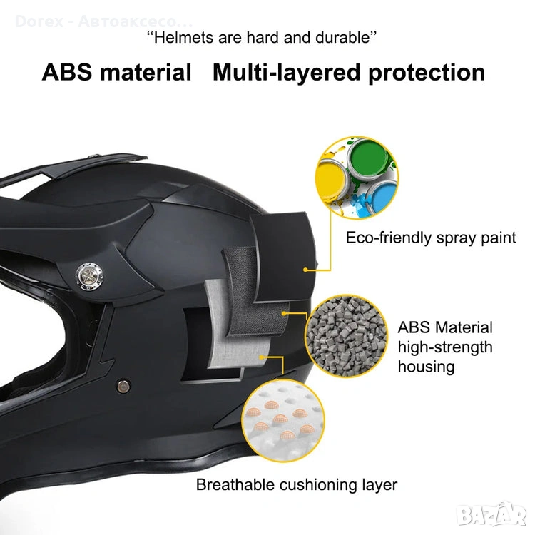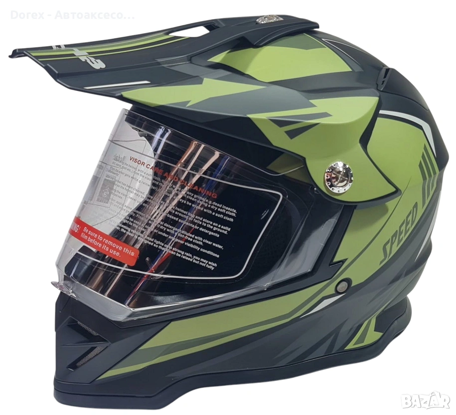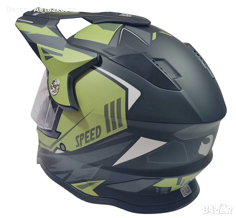 Крос каска за мотор, мотокрос, ендуро и АТВ в черно-зелен мат е създадена за динамично каране и екстремни условия. Със своя модерен дизайн и спортна визия, тя предлага отлична комбинация от комфорт, защита и стил.