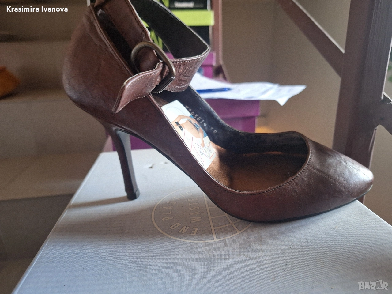 нови обувки естествена кожа цвят кафе с каишка около глезена,удобни и стилни