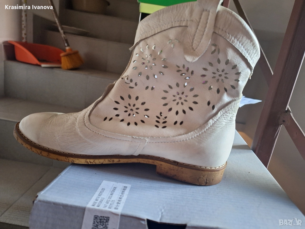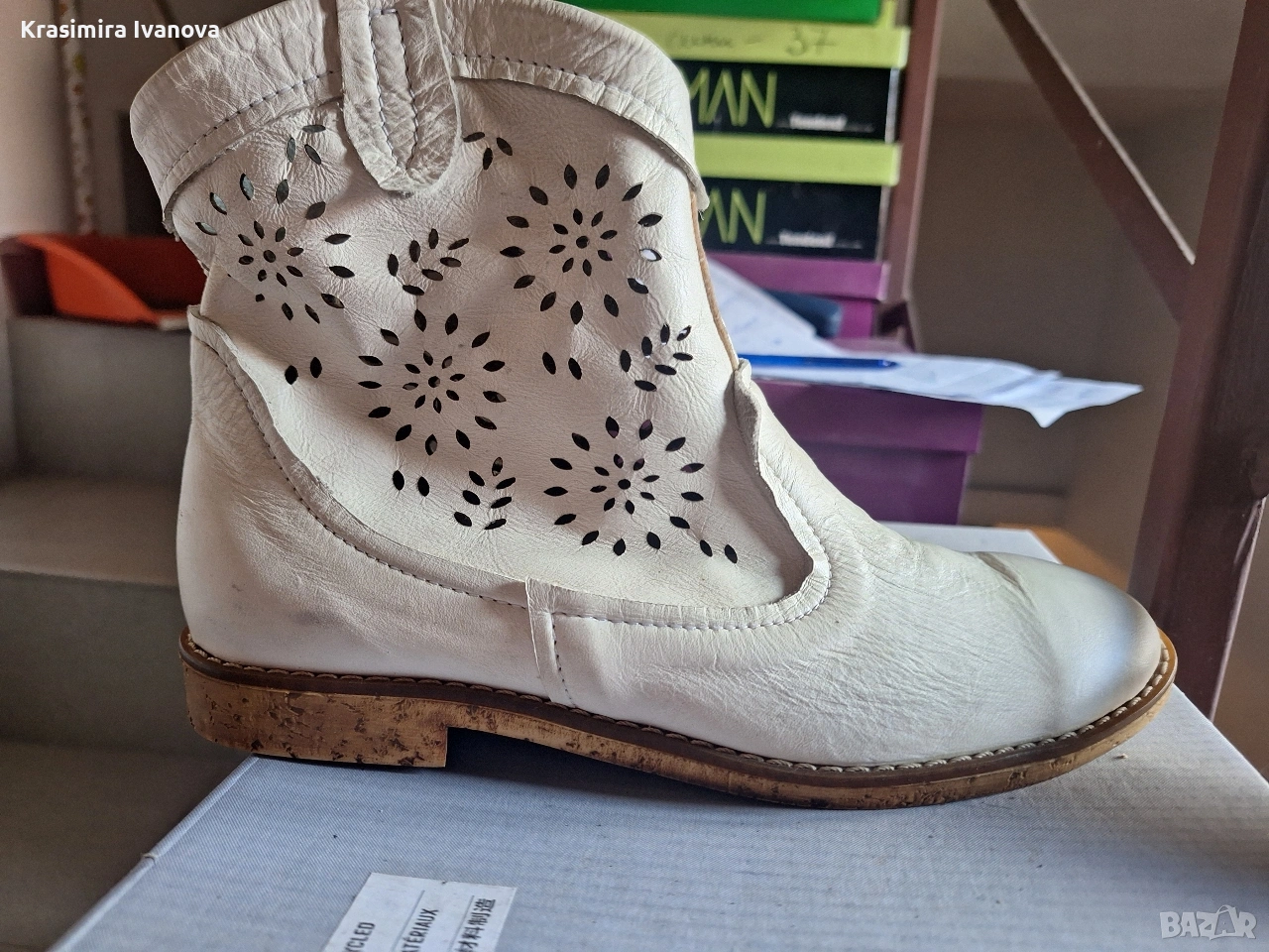 нови боти естествена кожа бяло рязана бродерия ,удобни и стилни