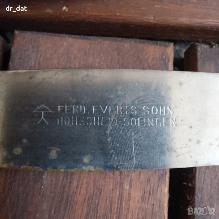 посребрени прибори за хранене, което по-специално показва, че изделието е било покрито с 90 грама сребро за стандартен комплект - 24 броя. Големи са и това се вижда от снимките. Общото тегло е около 2,2 кг.Ножовете са Ferd. Everts Sohn GmbH & Co. съществува от 50-те/60-те години на миналия век. FES произвеждали широка гама от стоманени изделия, включително класически джобни ножове, комплекти за пикник и градински ножове.