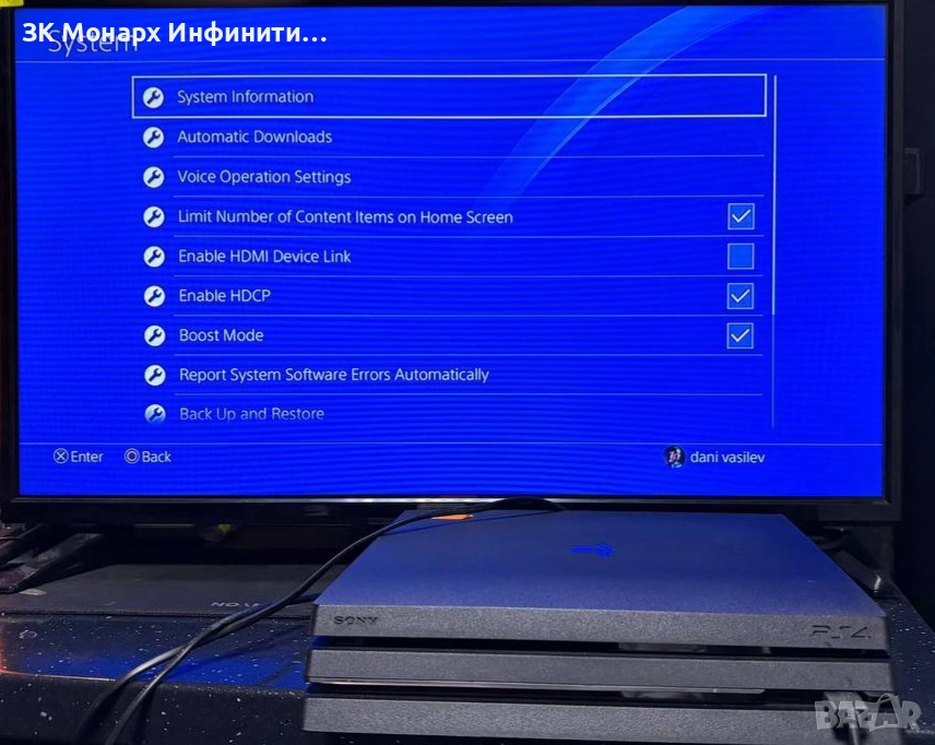 Конзолата е в отлично техническо и визуално състояние, работи тихо и не прегрява. Поддържа 4K и HDR.