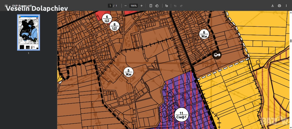 Градоустройствен статус: Съгласно проекта за изменение на Общия устройствен план (ОУП) на община Бургас, имотът попада в зона за жилищно строителство „ЖМ“ със следните проектни параметри: