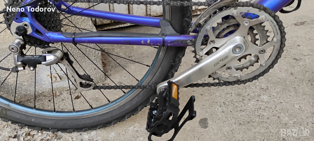 26 цола алуминиев байк TREK, 48 sm височина на рамката, алуминиеви капли, 24 скорости shimano DEORE XT, курбели shimano deore xt, преден амортисьор,aлум. капли mavic, нови гуми 12кг.. може да заплатите и в български лева./