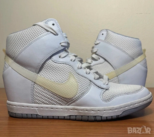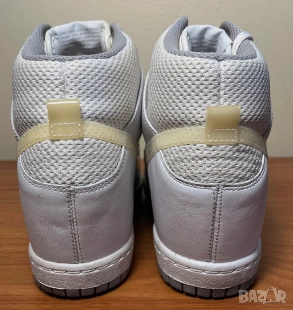 Дизайн: Високи кецове със скрита платформа (wedge), вдъхновени от класическия баскетболен модел Nike Dunk от 1985 г..