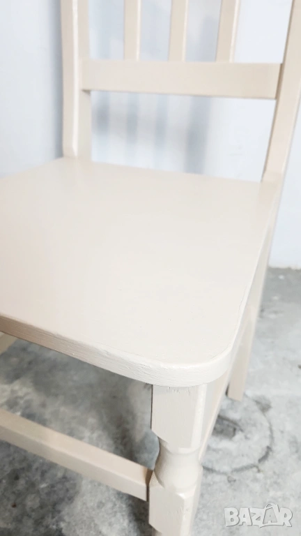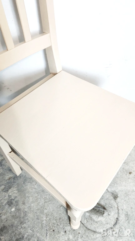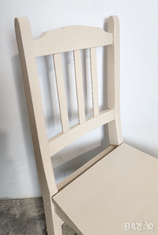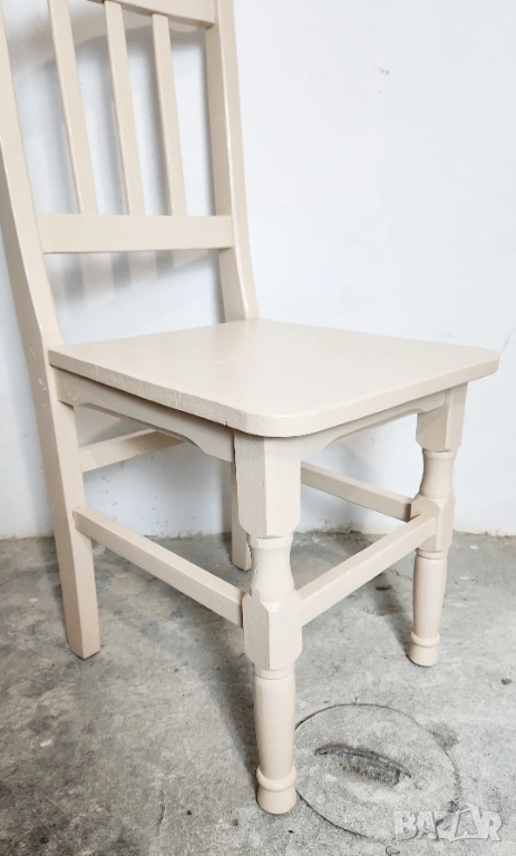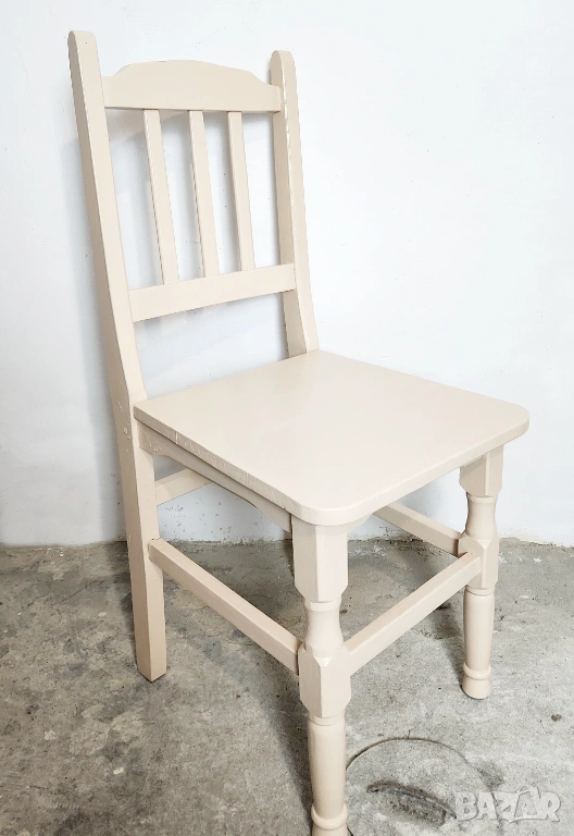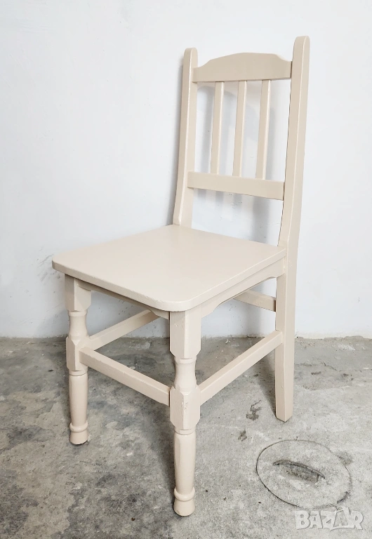 Дървен трапезен стол от масив. След ремонт и пребоядисване в цвя слонова кост.
