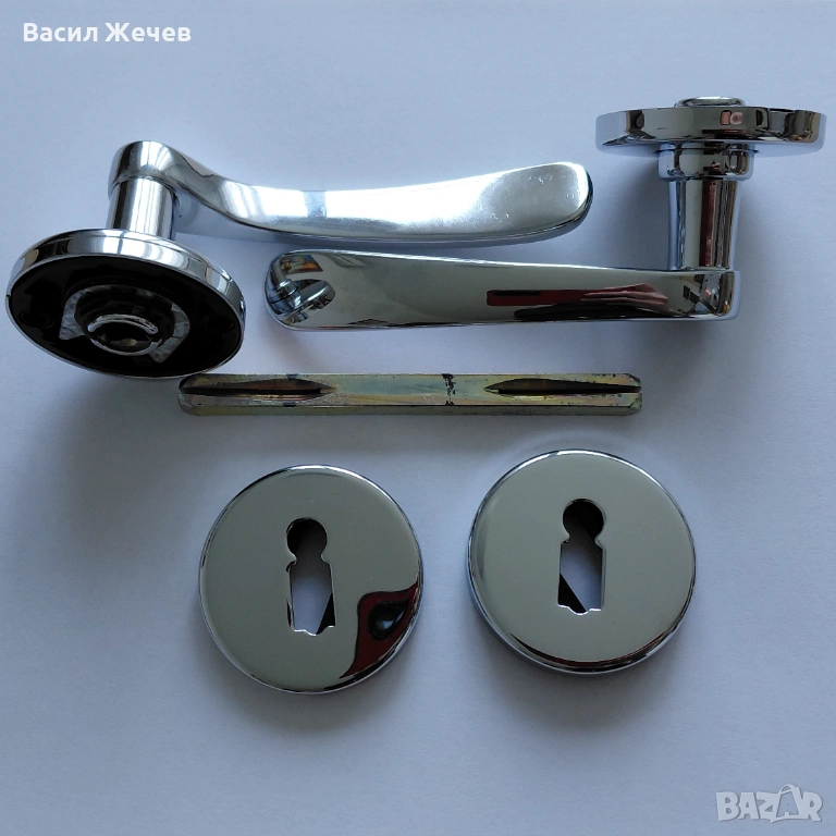Комплектът включва две дръжки, квадратен шип и две кръгли розетки за ключ, което го прави практично решение за монтаж на интериорна врата с обикновен секретен механизъм. Формата на дръжката е удобна за захващане и осигурява комфорт при ежедневна употреба.