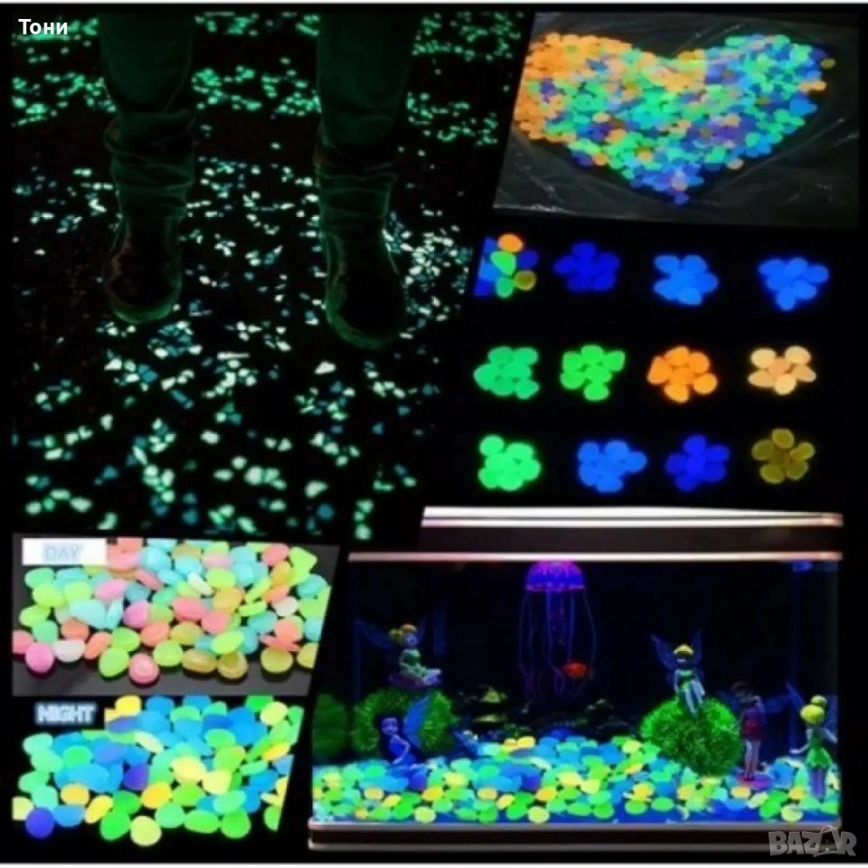 Светещи, декоративни, цветни градински камъни 100 бр. → Обява 54185746