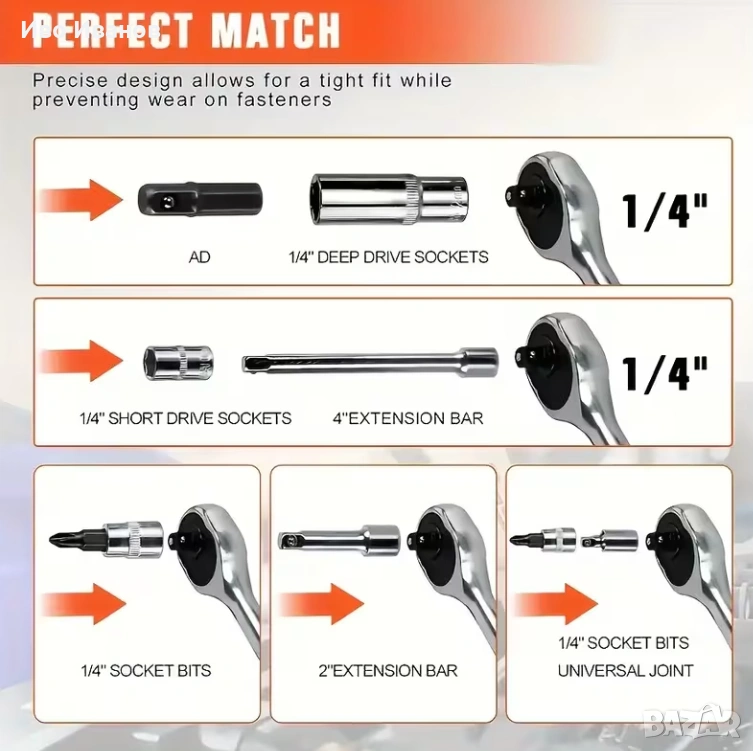 вложки и битове – кръстати, прави, торкс, шестограмни и звездовидни.Тресчотка с