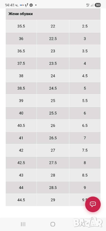 Размери от 35.5 до 44.5