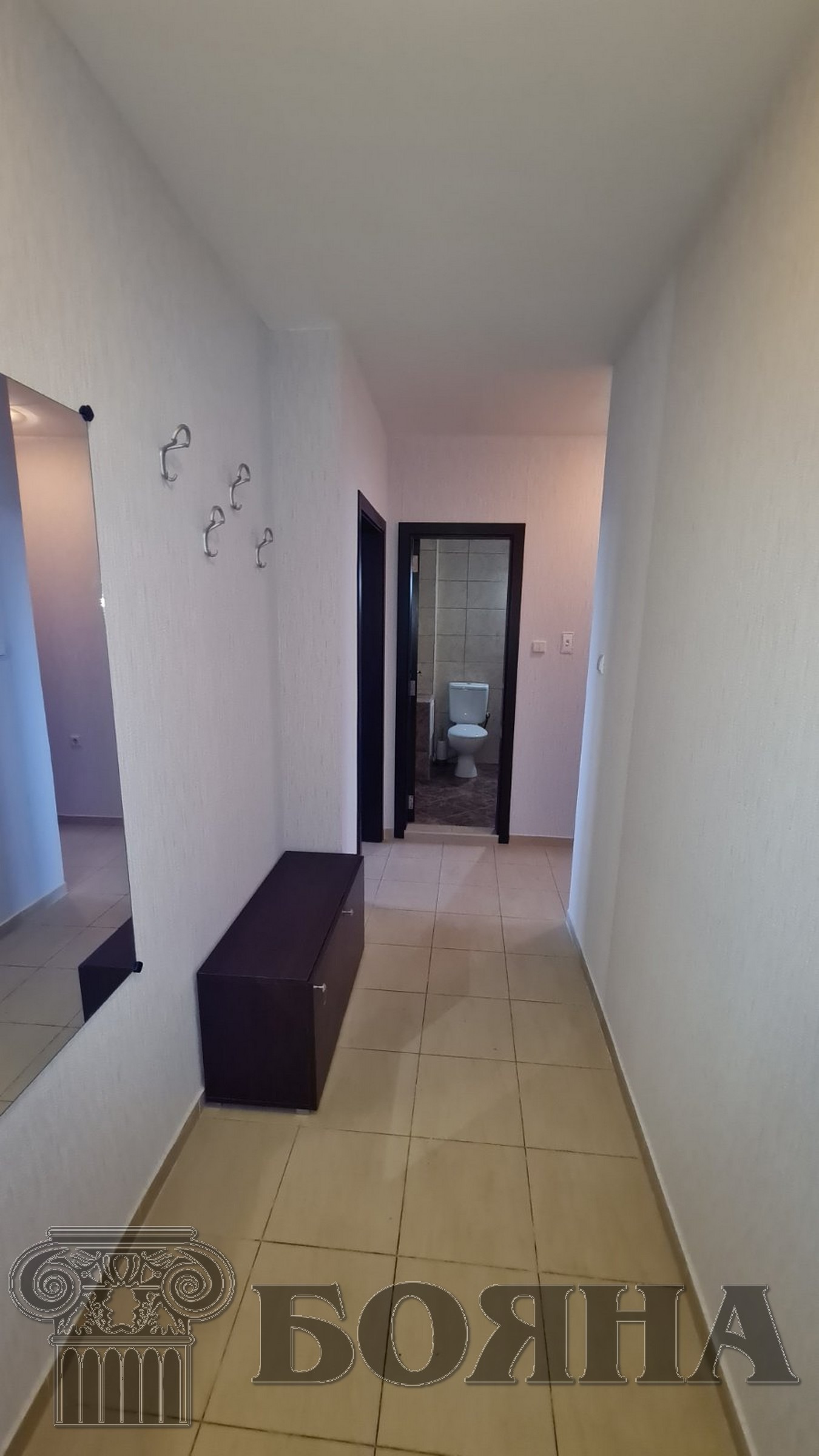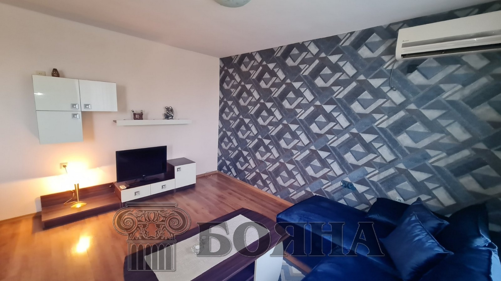 Имоти 'Бояна' отдава просторен и светъл двустаен апартамент, разположен в близост до Центъра и Градски Хали, представляващ дневен тракт с тераса, спалня и санитарни помещения. Апартаментът е в отлично състояние с поставена висококачествена ПВЦ дограма и настилки-ламинат и теракот. Отдава се напълно обзаведен с всички необходими мебели и техника. Жилището е санирано, топло и с климатици в стаите. Кооперацията е нова, с добре поддържани общи части и асанасьор.