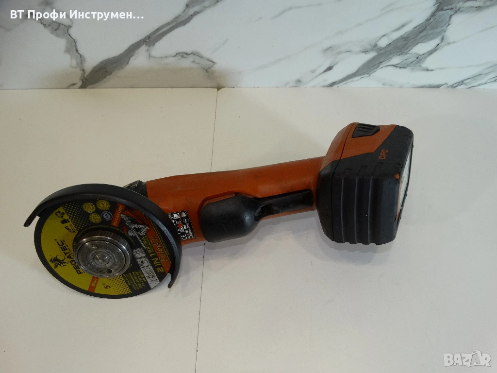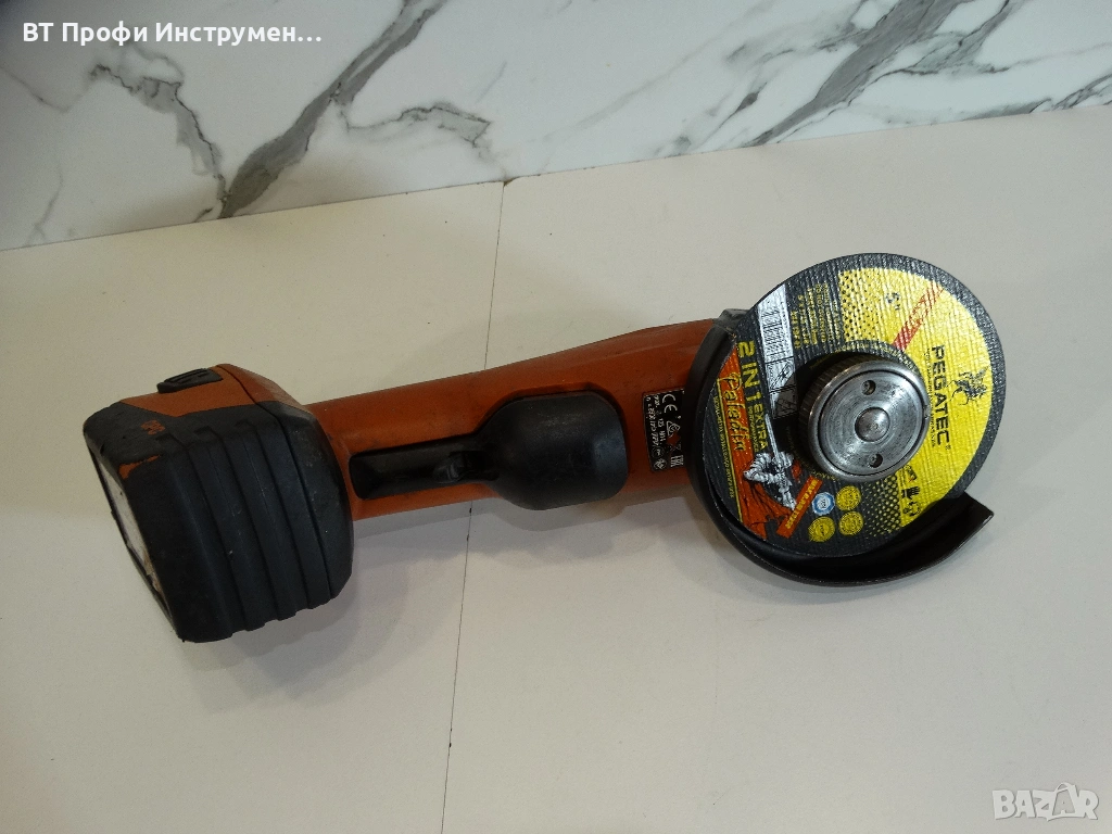 Безкабелен ъглошлайф с безколекторен електродвигател, който се използва с