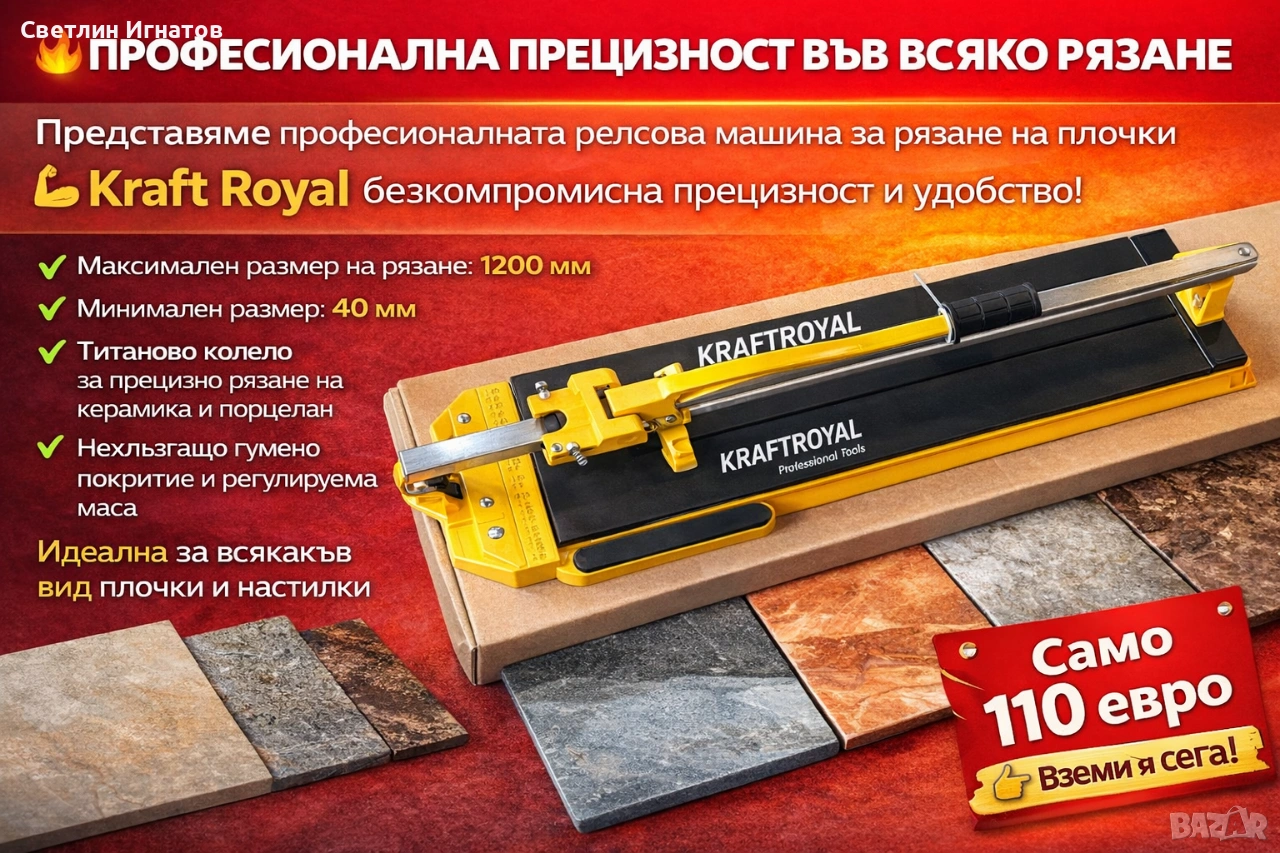 🔧 Представяме професионалната релсова машина за рязане на плочки Kraft Royal!
