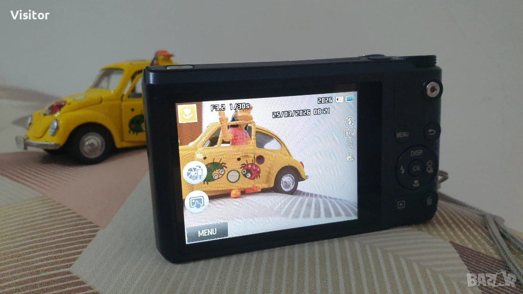 Моля,прочетете изцяло обяванта и разгледайте снимките показващи състоянието на фотоапарата и вижте снимките правени с него.Така ще добиете минимална представа за предлаганото изделие.Предлагам на Вашето внимание този компактен,смарт фотоапарат на марката SAMSUNG-WB250.Изработен е със здраво тяло и съчетано с красив тъмносиня разцветка.Изключително запазен външен вид! Лесно боравене с менюто - което е на БЪЛГАРСКИ. Изключително бърз автофокус съчетан с 14 МрХ матрица и светлосилен ултраширок /24–432 mm / на Sneider Kreusnach 18х оптичният зуум този фотоапарат прави невероятни снимки с наситена цветност и нюанси на изображението както наблизо така и надалечно разстояние. Има и WI-FI система Фотоапарата има система за оптична стабилизация *OIS* - заснемане на високи сгради!Записва видео в HD формат 720р,Н.264 с качествен звук. Има и пълен ръчен режим - /А,S,М/ Светкавицата работи отлично и осигурява направата на качествени снимки и в стайни помещения.Към фотоапарата предлагам и пълен комплект аксесоари - оригинална батерия, SD карта 16GB,която е с капацитет за записване на 2026 снимки,кабел за прехвърляне на снимки и видео информация към компютър или друго медийно устройство.Същият кабел + оригинално зарядно устройство зарежда батерията на място във фотоапарат - без да се вади от него.Към фотоапарата има малък трипод за по - лесна направа на селфи или семейни снимки.и връвка за по лесно носене и правене на снимки,твърд калъф за предпазване на фотоапарата при пренасяне.Разгледайте и снимките правени с този фотоапарат на дневна светлина и на светкавица в стая. При проявен интерес от Ваша страна изпращам чрез офис на ЕКОНТ с опция - преглед и тест!