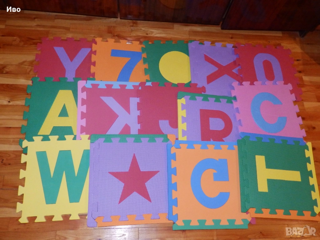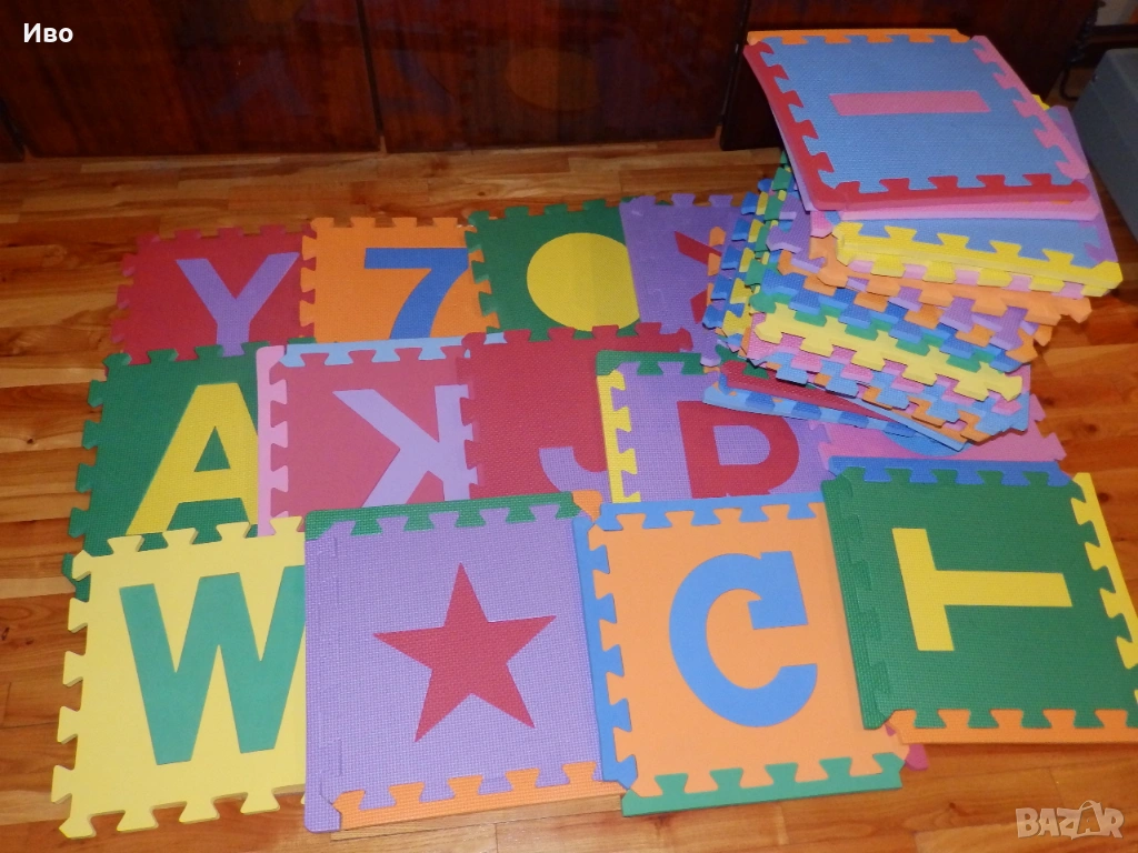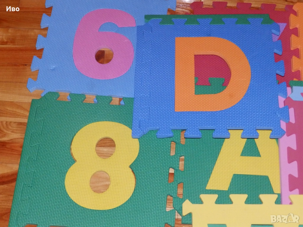 - Голям мек пъзел за под. Размер на частите 32/32см. Числа, букви и