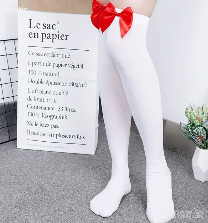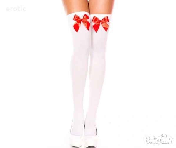 Сексапилните дълги дамски чорапи са с червена панделка. Материята е мека, еластична и дишаща. Дължината е около 40-60 см/15,7-23,6 инча.