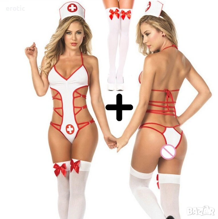 Еротичните игри са изключително романтично забавление. Интимният живот винаги се нуждае от разнообразяване, а какво по-хубаво от това да започнете с еротичен секси костюм на медицинска сестра? Класическият образ на палава медицинска сестра присъства във всички мъжки фантазии. Обичате да се забавлявате с партньора си? Харесвате да опитвате нови неща? Тогава този секси костюм на медицинска сестра е точно за вас. Съблазнителен еротичен костюм на медицинска сестра. Секси костюмът се състои от три части. Материята е мека на допир и изключително еластична. Продуктът е подходящ за подарък за за всеки специален повод.