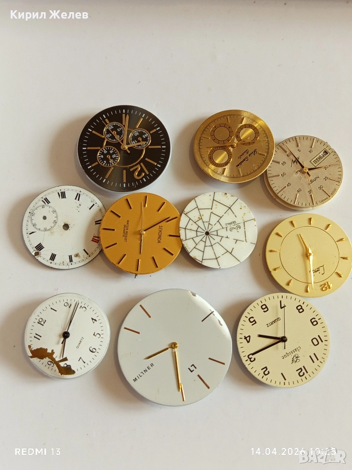 Лот 10 броя механизми с циферблат кварцов часовник за части КОЛЕКЦИЯ 43405 → Обява 54187524
