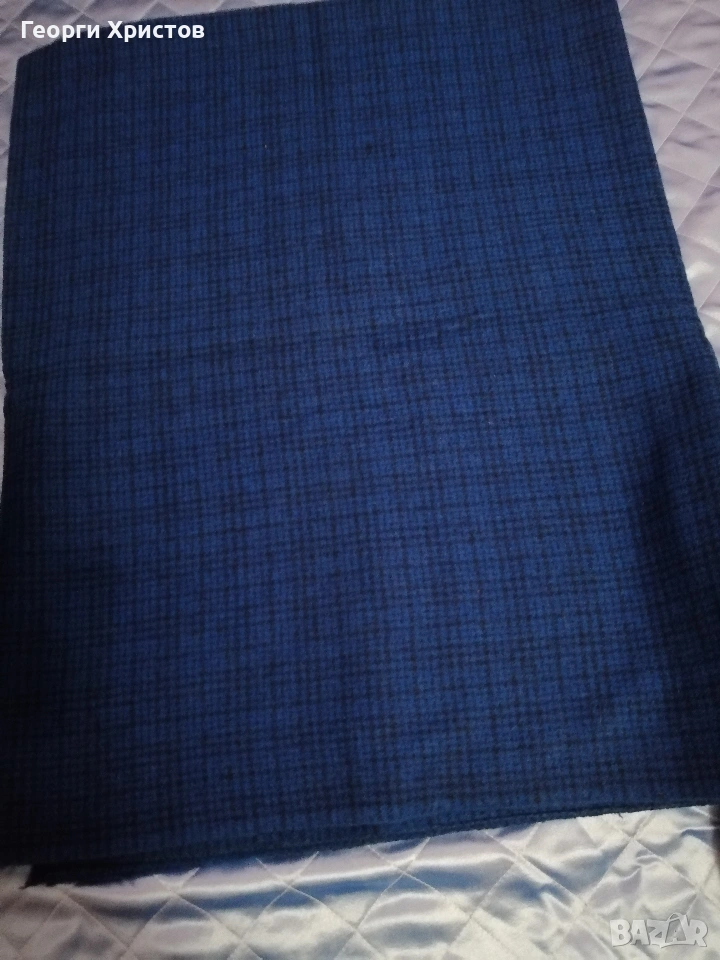 Вълнен плат с качество от соца. Размери 223/140см..Подходящ за палто, сако, поли и панталон. Платът е каре в много приятен тъмно син цвят и черни ивици, които оформят карето.