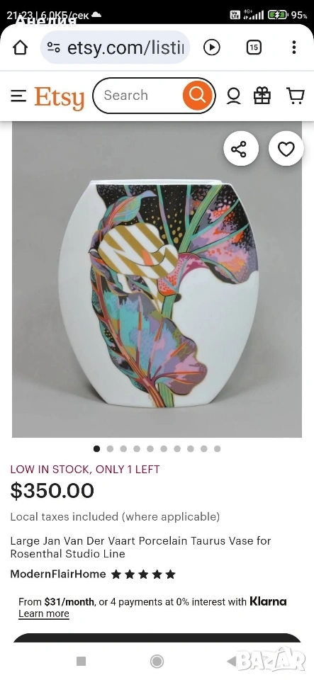 Π’Π°Π·ΠΈ Π²Π°Π·Π° Π΅ Π² ΠΌΠΎΠ΄Π΅Π» βΠ’Π΅Π»Π΅Ρβ Ρ ΠΈΠ·Π²ΠΈΡΠ° ΡΠΎΡΠΌΠ° ΠΈ ΠΏΡΠ΅Π³ΡΠ½Π°ΡΠΈ ΡΡΡΠ°Π½ΠΈ. Π‘ΡΠΈΠ»ΠΈΠ·ΠΈΡΠ°Π½Π°ΡΠ° Π΄Π΅ΠΊΠΎΡΠ°ΡΠΈΡ ΠΎΡ ΠΊΠ°Π»Π° ΠΈ Π»ΠΈΡΡΠ° Π΅ Π΄Π΅Π»ΠΎ Π½Π° Π½Π΅ΠΌΡΠΊΠ°ΡΠ° Ρ