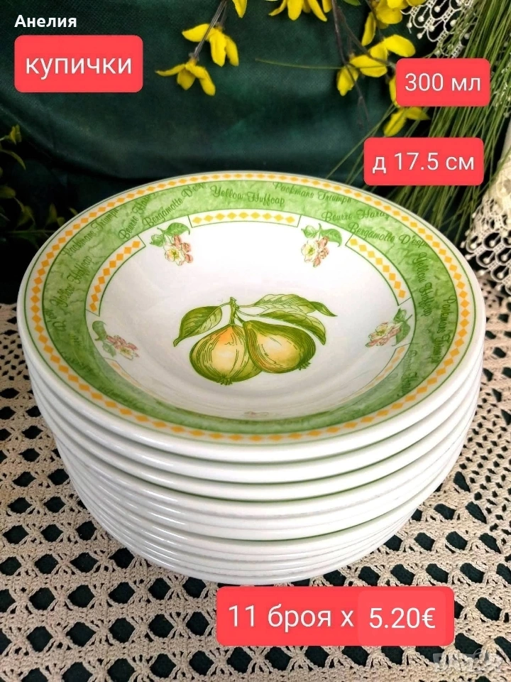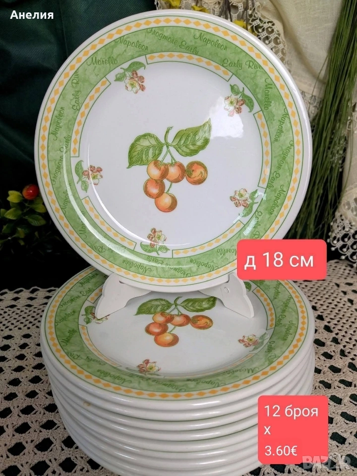 🍒12 чинии десерт с д 18 см х 7.04 лв/3.60€
