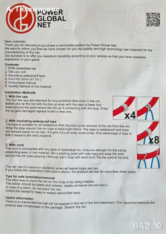 Продавам висок клас баскетболна мрежа от Power Global Net, изработена по иновативна технология, която я прави значително по-издръжлива от стандартните модели.