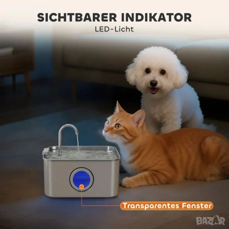 ✔ Видим прозорец за нивото на водата на котешката фонтана с LED светлина за лесно наблюдение