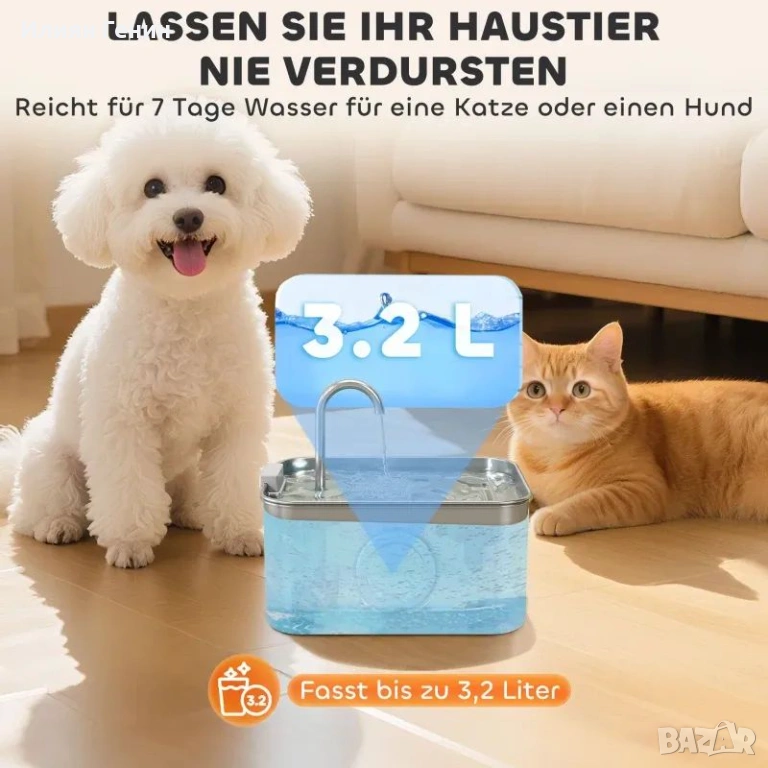 ✔ Големият капацитет от 3,2 литра осигурява на вашия домашен любимец вода за 7 дни