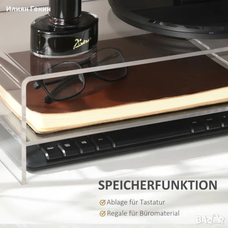 Стойка за монитор HOMCOM с отделение за клавиатура, прозрачна, за монитори до 24 инча, 2 нива, акрил, 50.8 x 19 x 12 см - 25.00 €.