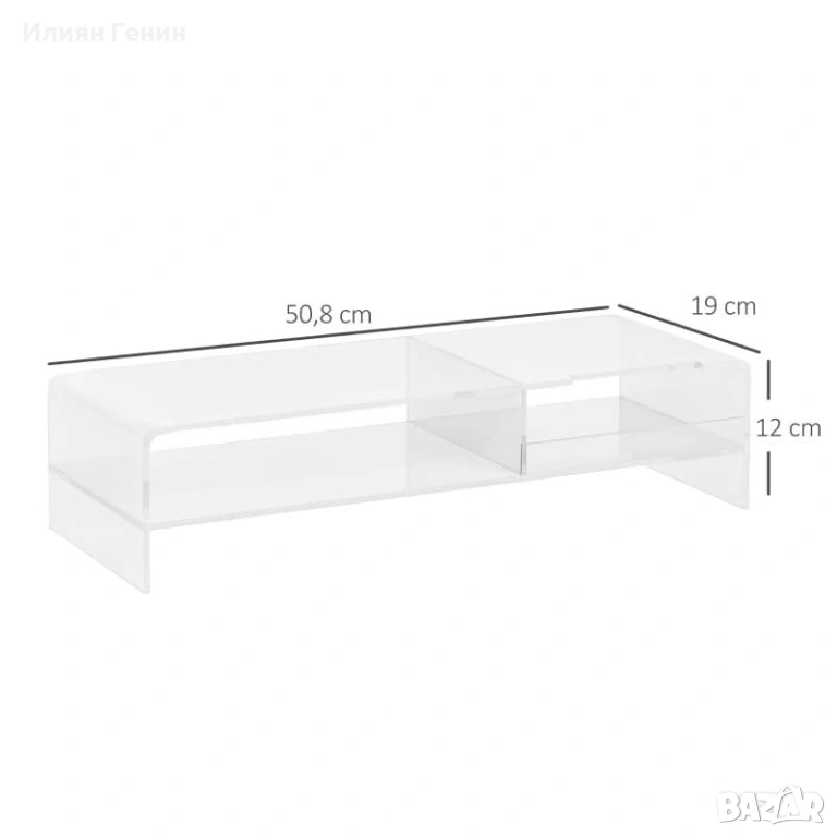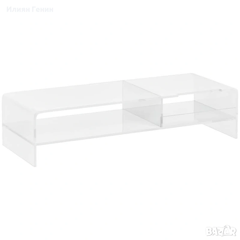 Промислен дизайн: Тази прозрачна, двуетажна стойка за монитор, с дебелина само 0,5 см, има платформа с размери 50,8 x 19 см и е подходяща за компютърни монитори или лаптопи с диагонал на екрана до 24 инча. Благодарение на прозрачния си материал, лесно можете да виждате предметите, поставени под стойката за монитор.
