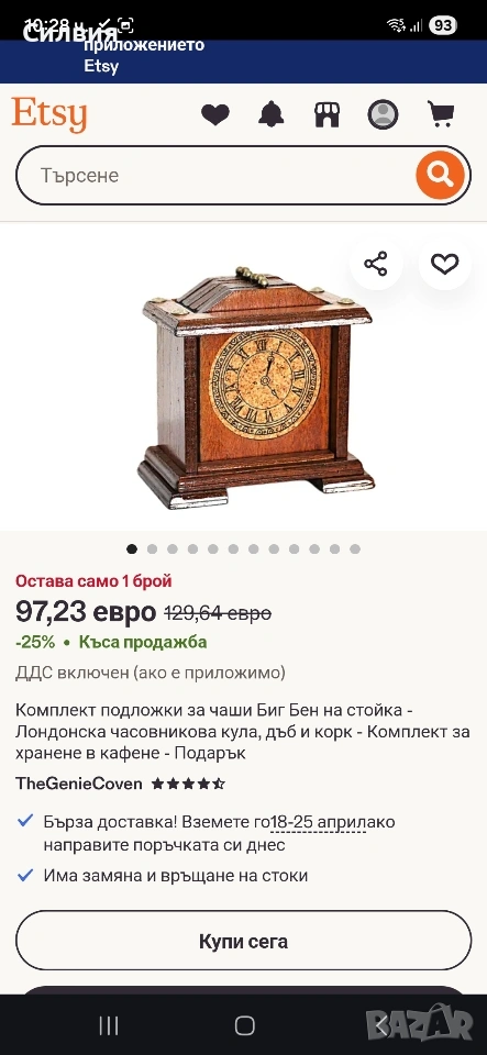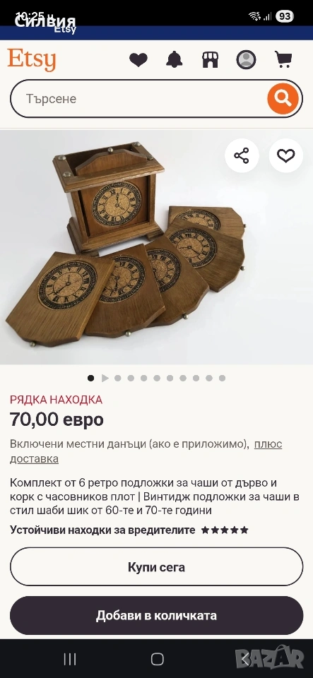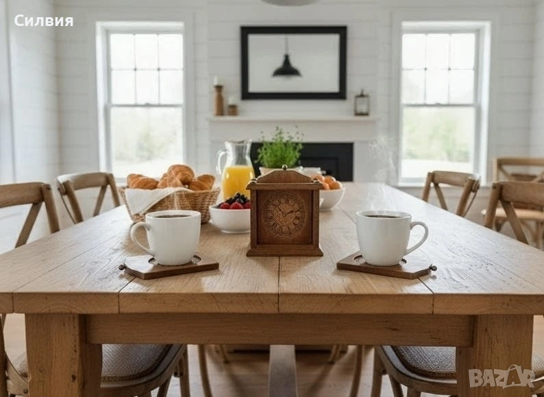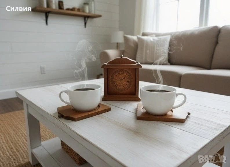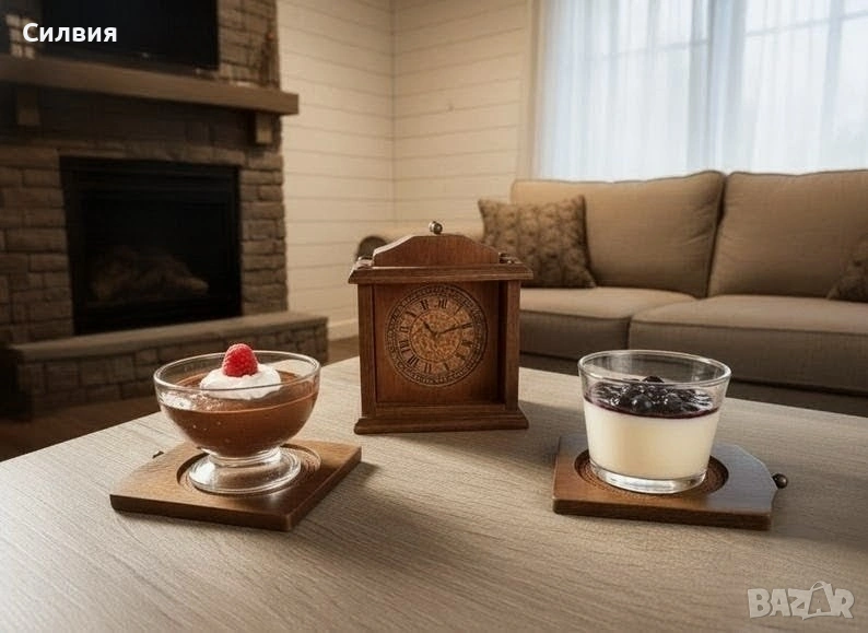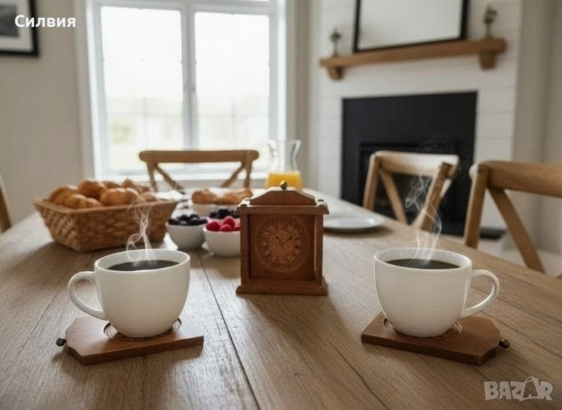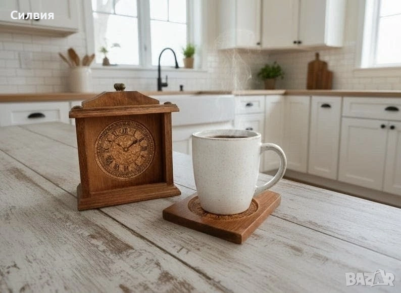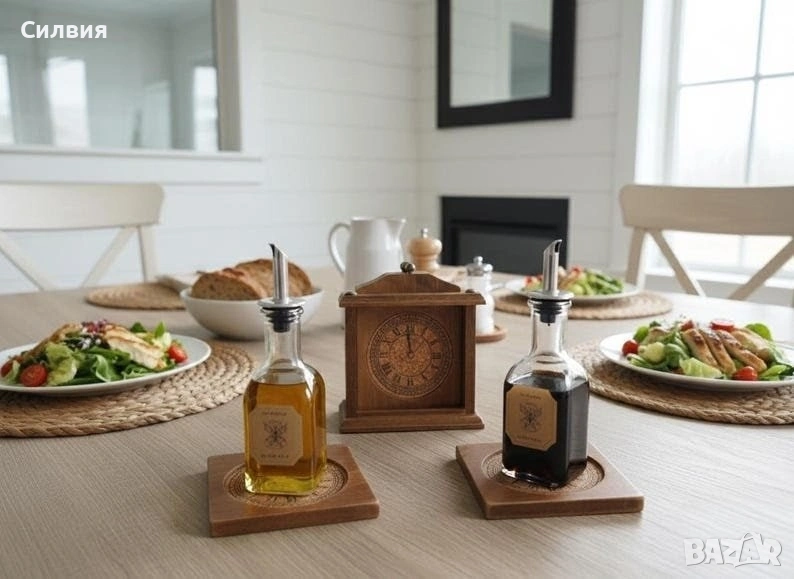 Винтидж подложки за чаши от дърво/корк с поставка с изображение на часовник. Добавете нотка винтидж чар към вашите бар инструменти и аксесоари с тези красиви подложки за чаши и поставка. Комплектът включва 6бр. подложки за чаши, всяка от които е изработена от висококачествен дървен материал, който е идеален за предпазване на повърхностите ви от разливане на напитки. Подложките за чаши се отличават с уникален дизайн на часовник, който със сигурност ще впечатли гостите ви. Комплектът се предлага и с поставка, която е идеална за показване на вашите подложки, когато не се използват. Кутията е изработена от издръжлив дървен материал. Този комплект е идеален за всеки, който обича да забавлява или иска да добави нотка елегантност към домашния си бар. Оригиналните подложки за чаши, имитиращи часовници, са произведени във Франция през 70-те години на миналия век. Отгоре има малки метални копчета за изваждането им и 4 златисти пирона отгоре. Винаги ще се намери на масата ви и може да бъде полезно и да украси всяко ваше място. РАЗМЕРИ: подложка-12,5/9см. Кутия-14/12/8,5см. Цена 3️⃣5️⃣€ 68,45лв ღꕥ⊱❥─❥⊱💜✿⊱╮☆♪ ░L░o░V░e░❥─❥⊱💜✿⊱╮💜☆♪ღ💜ღ꧂ღ