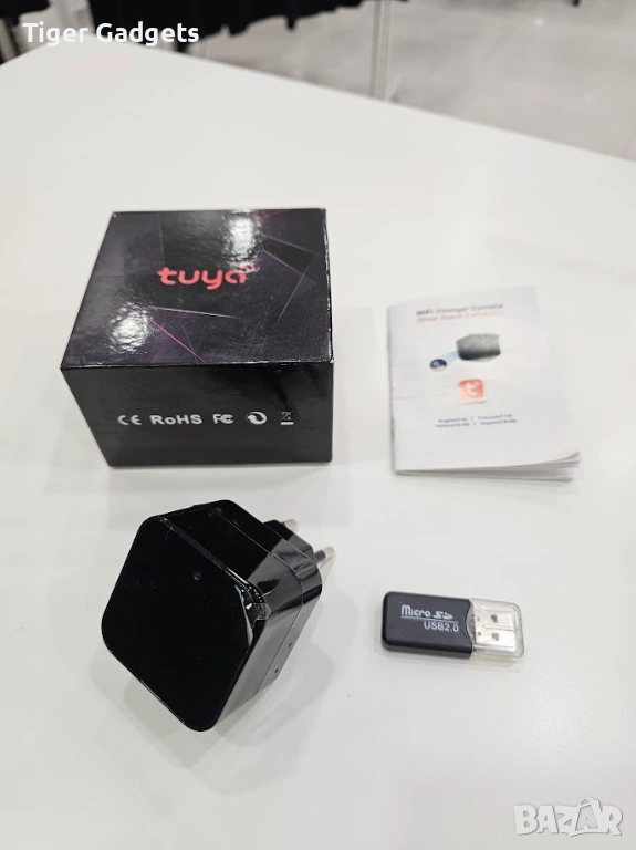 Скрита камера, вградена в захранващ адаптер, която позволява дискретно видеонаблюдение с дистанционен достъп през Tuya/Smart Life приложение. Устройството работи като стандартно зарядно, но едновременно с това записва видео и може да се наблюдава в реално време.