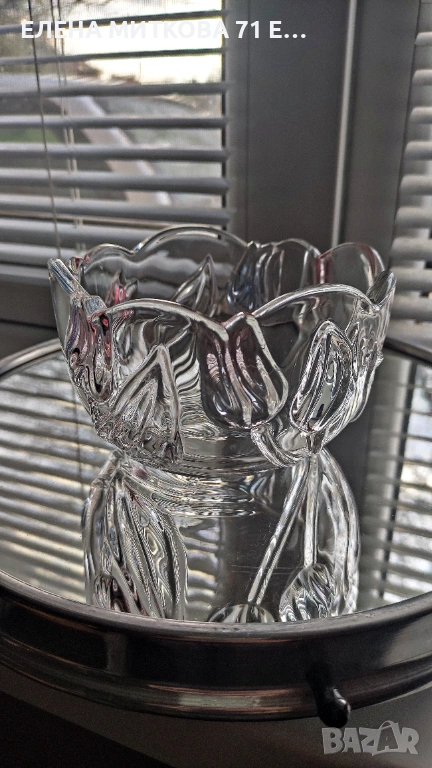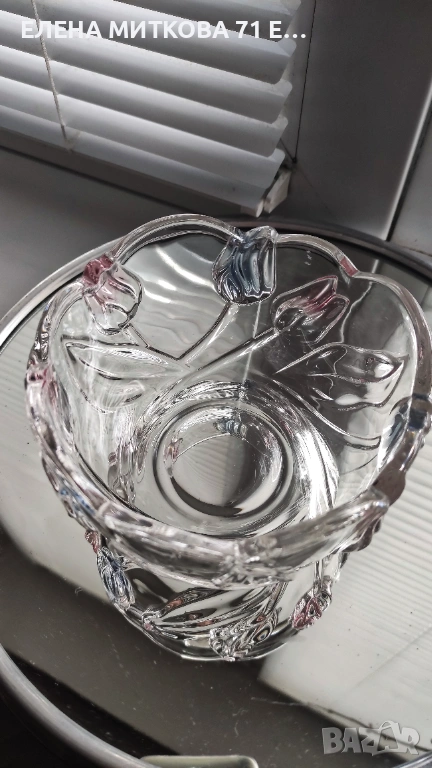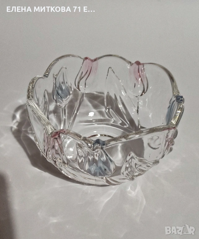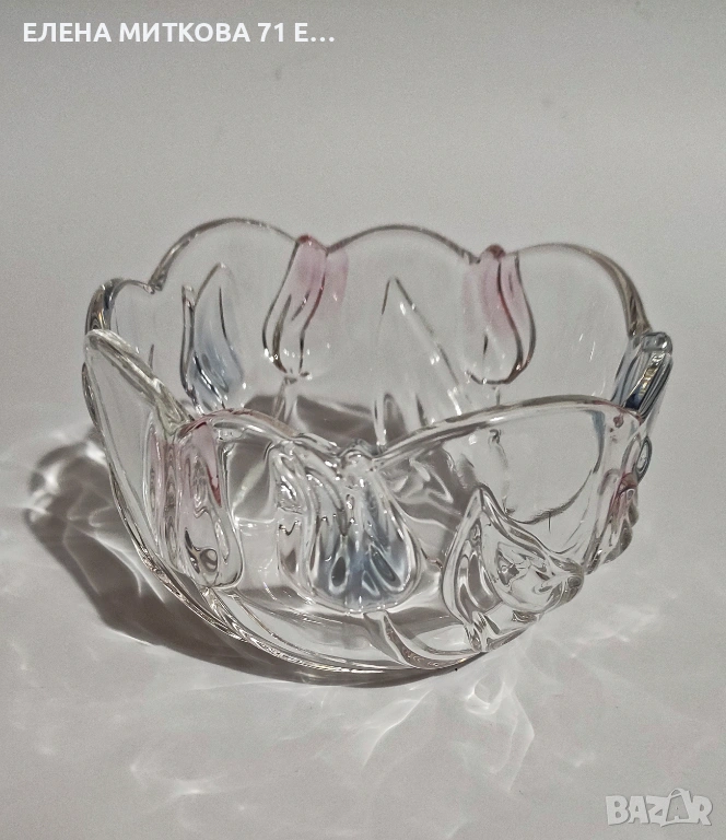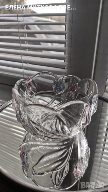*Walther glas* Германия купичка от кристално стъкло с релефни лалета → Обява 54188917