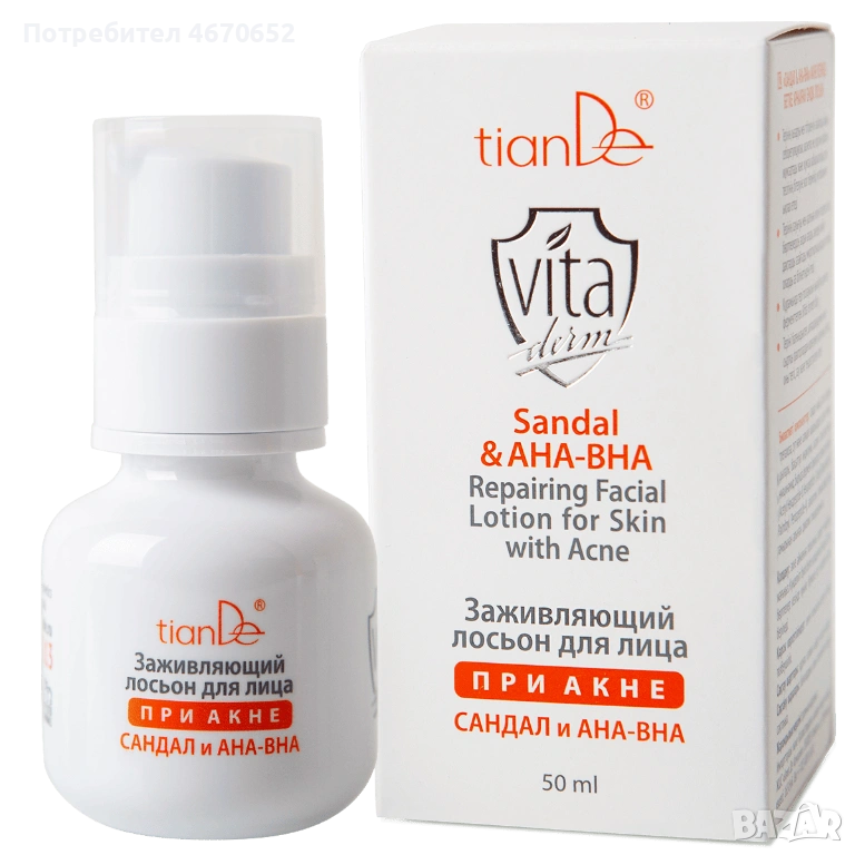 Заздравяващ лосион при акне „Сандал и AHA-BHA”, 50 мл → Обява 54189209