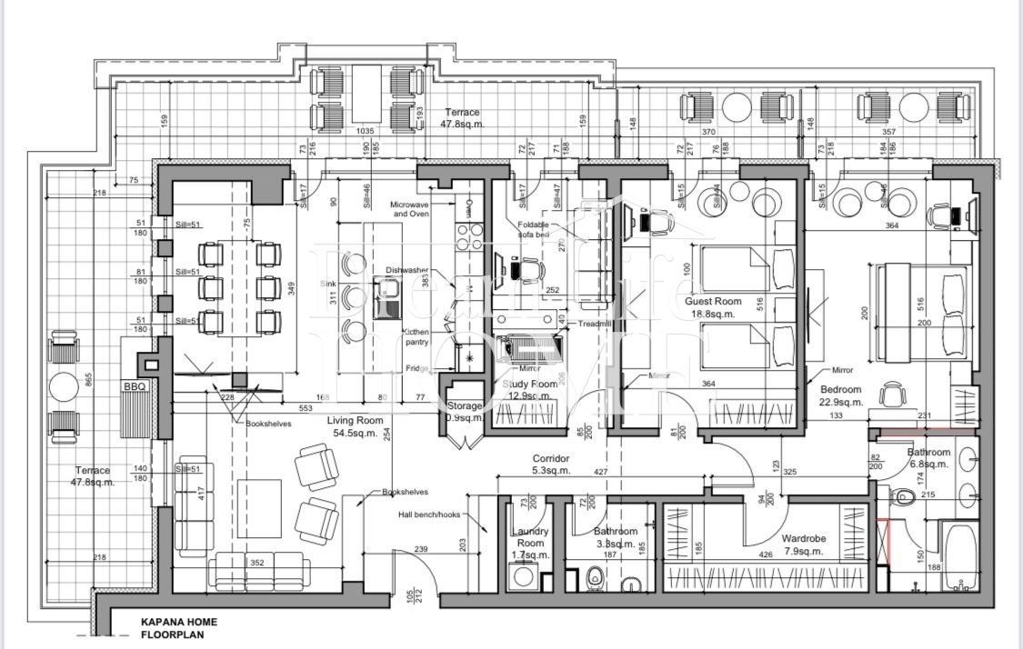 Този прекрасен имот с площ от 238 кв.м. , като са разпределени както следва: голяма всекидневна с кухненски кът и трапезария /51 кв.м./ с излаз на прекрасна тераса, родителска спалня със собствена баня и тоалетна с площ от 26 кв.м.,както и гардеробна,две детски стаи с площ от 19 кв.м. и 14 кв.м. с излаз на голяма тераса от трите спални. Апартаментът е ситуира в тухлена сграда въведена в експоатация 2019 г., разположен на 5-ти етаж от 6 етажна сграда с асансьор.