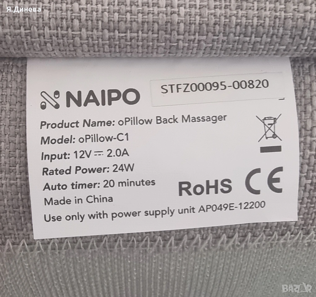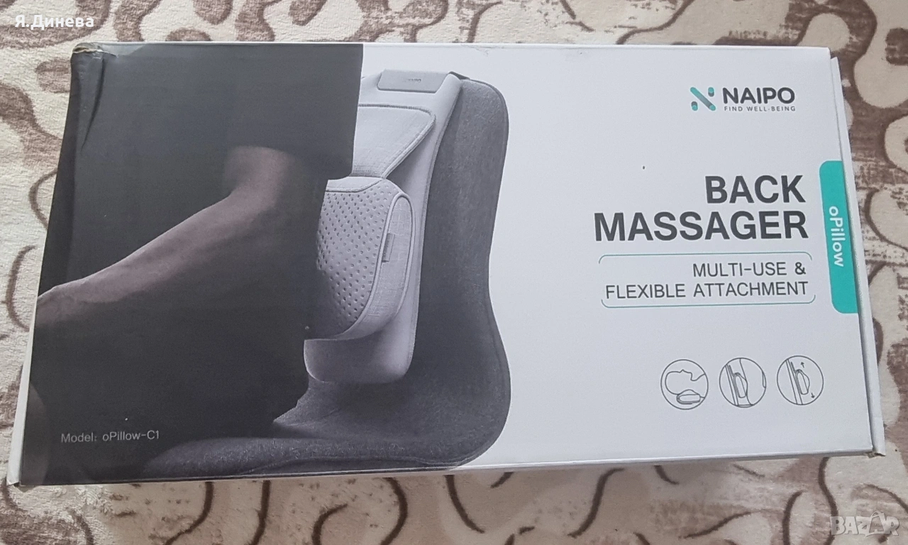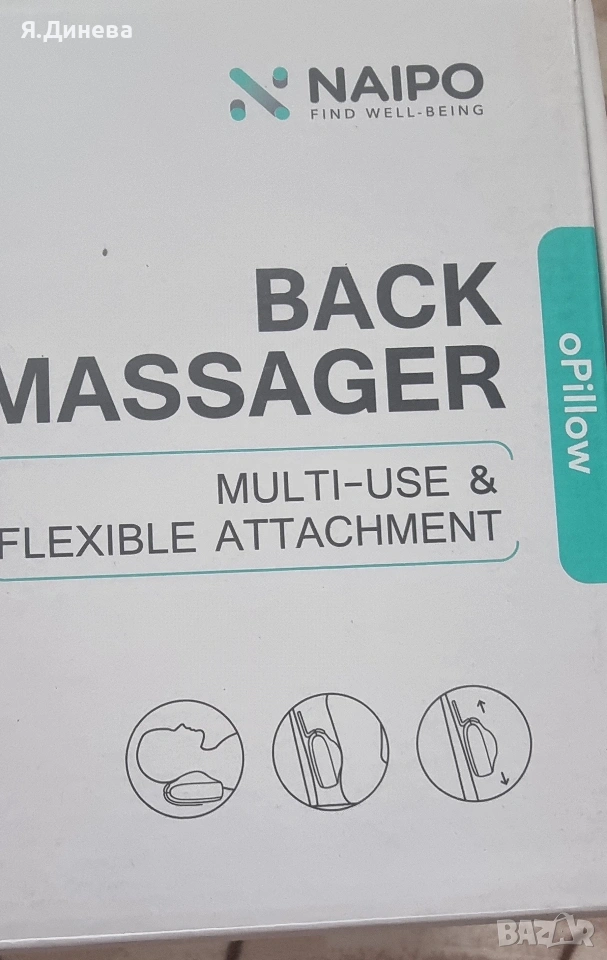 Продавам чисто нов масажор за стол Naipo,тестван и работещ. Масажора може да се постави на стола на работното място,също така може да се отлепи от закачащата се дъска и да се използва в легнало положение. Внос от Германия Имаме 3 бр цената е за брой.