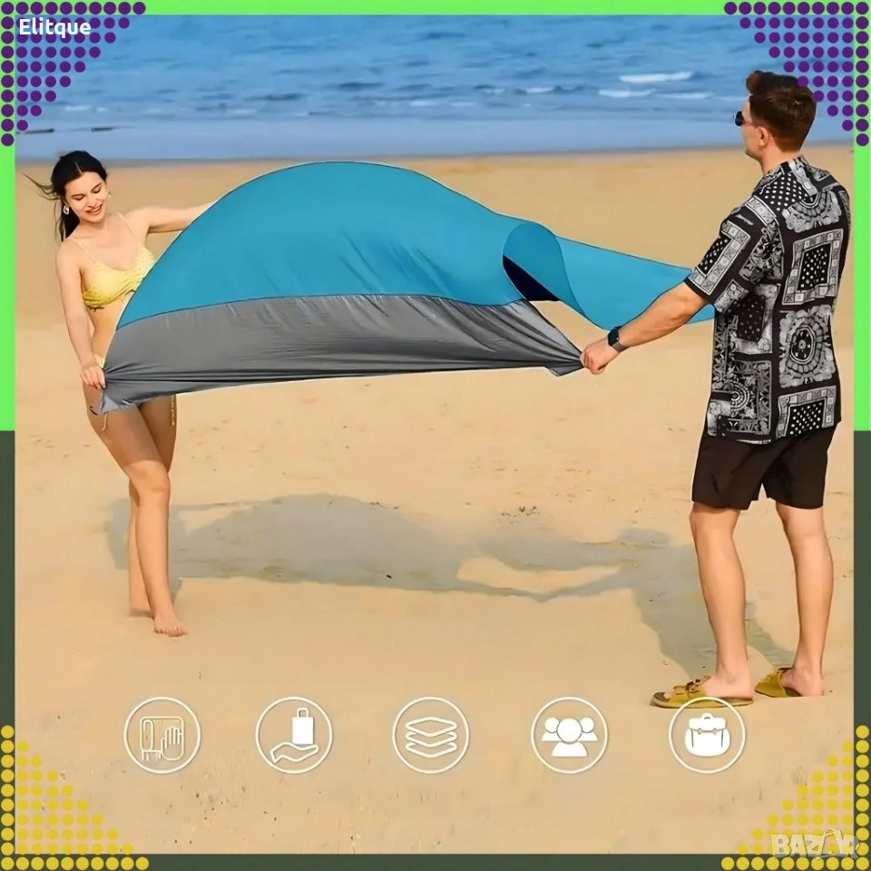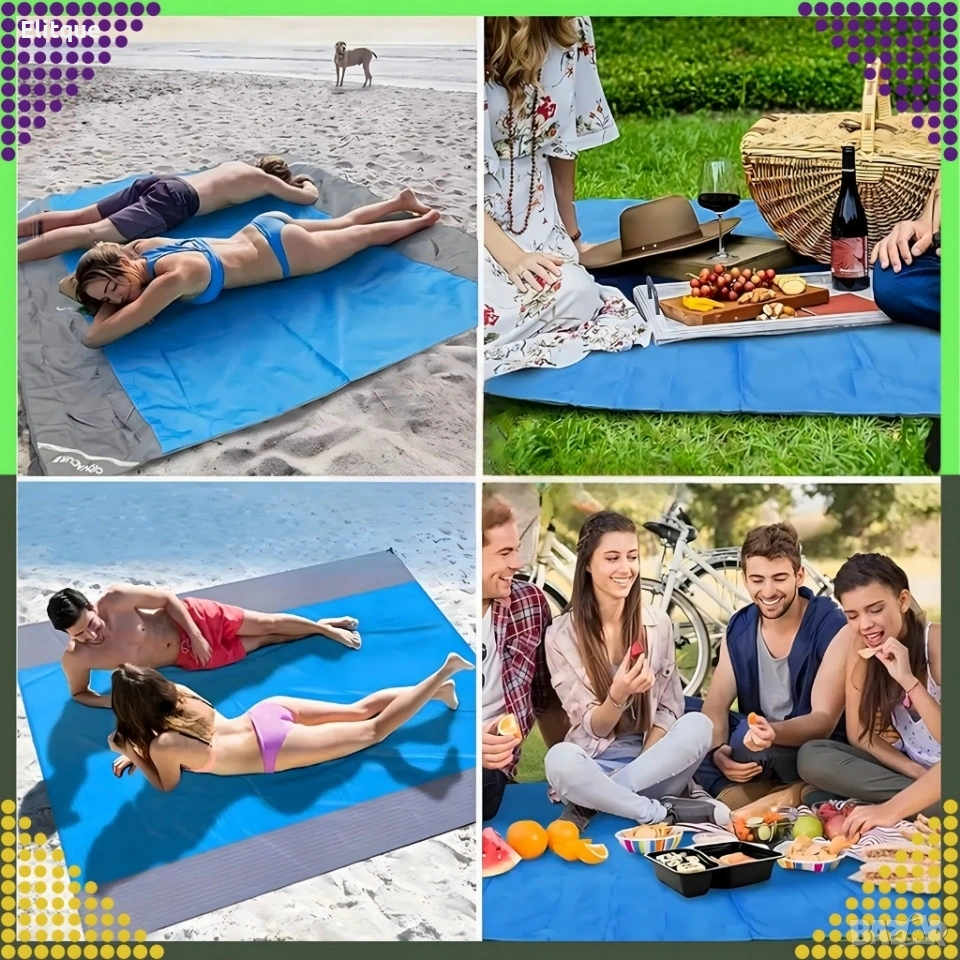Голямо водоустойчиво плажно одеяло - Постелка за пикник подходяща за цялото семейство, 210 x 200 см