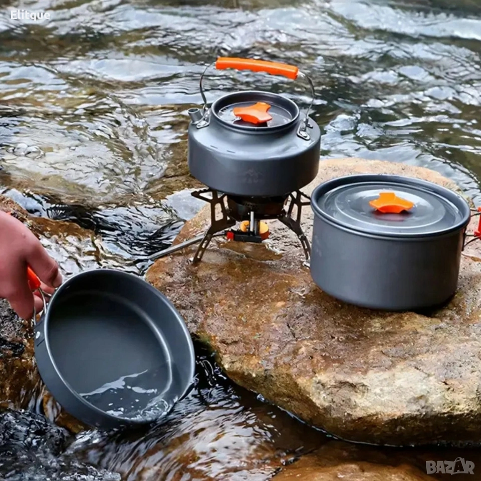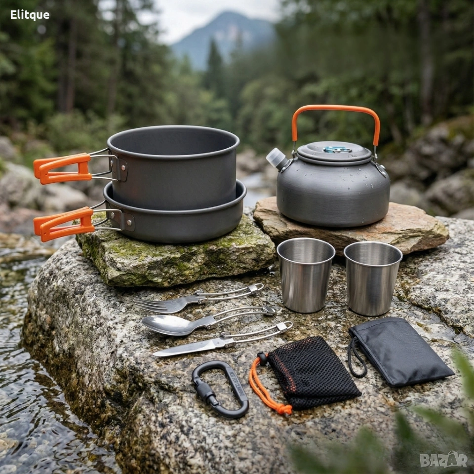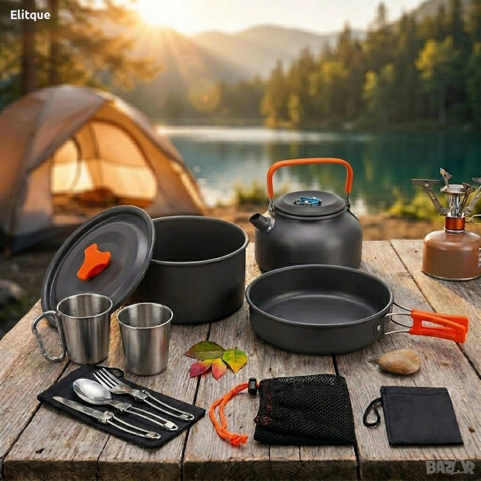 Къмпинг комплект за готвене XXL от 15 части – Пълен сет от анодиран алуминий
