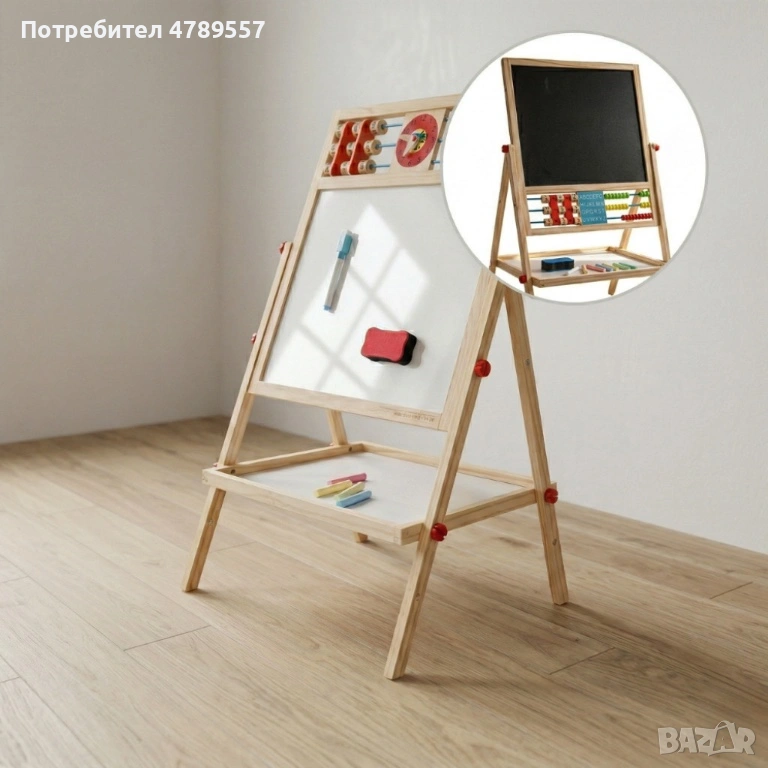 Мултифункционална образователна детска дъска с дървена рамка – за писане, рисуване и обучение